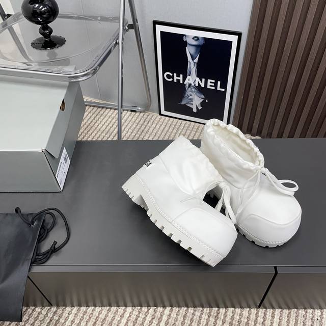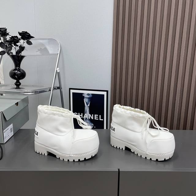 出厂:中靴 独家顶级版本 DDD Balenciag*巴黎世*家2025Vs秋冬雪地靴系列 DDD 胖嘟嘟雪地短靴 DDD 巴黎世家今年又出战靴!胖嘟嘟这么可爱啊!黑暗系的雪地靴真的太显瘦了 回头率巨高!原版拆解不仅是材质和原版一样就连小细节都跟Zp无区别! DDD 面料:原版定制防水布 DDD 内里:原版定制防水布 DDD 垫脚:原版定制防水布 DDD 大底:原版开模Tpu防滑大底 DDD 包装:原版全套包装 DDD 码数:35-44 女41.男45.定做不退换 DDD 颜色:官方同步2色出 DDD