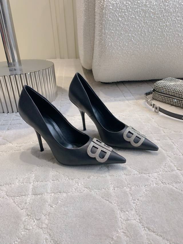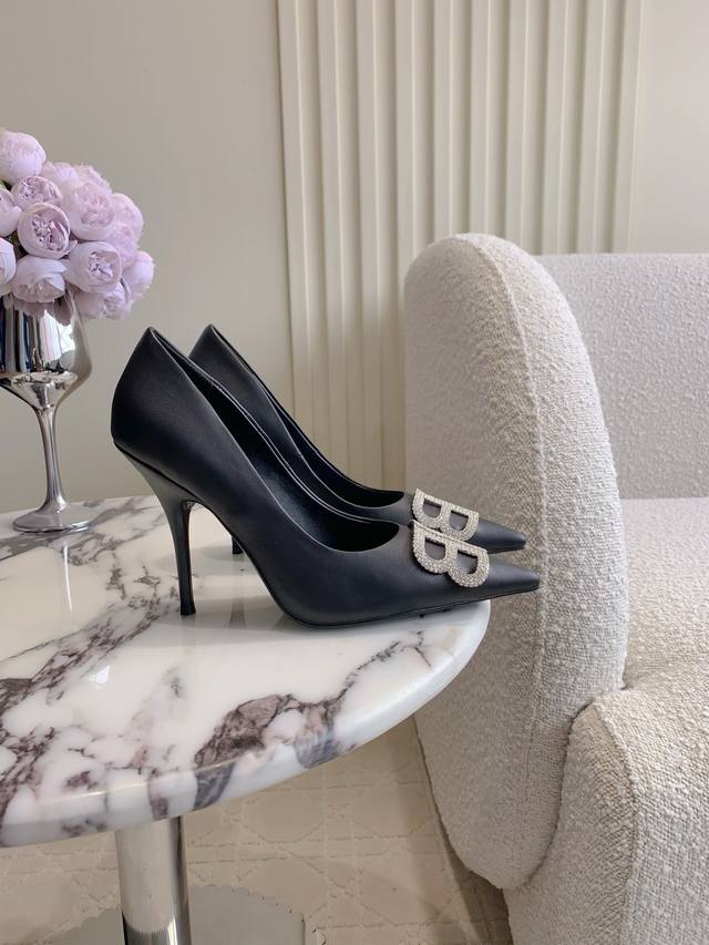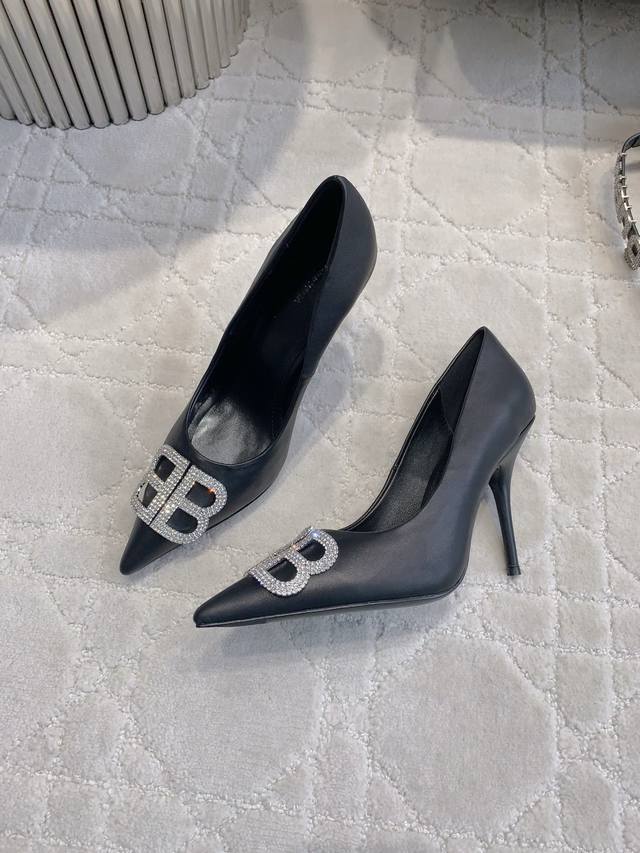 / 出厂价P Balenciag*经典款高跟单鞋 小尖头设计拉长腿部线条 经典双B扣装饰大气又耐看 鞋面小牛皮 内里垫脚羊皮 意大利真皮大底 跟高9.5Cm 尺码3