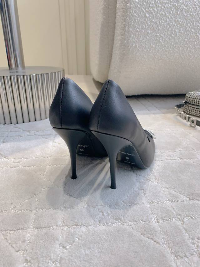 出厂价P Balenciag*经典款高跟单鞋 小尖头设计拉长腿部线条 经典双B扣装饰大气又耐看 鞋面小牛皮 内里垫脚羊皮 意大利真皮大底 跟高9.5Cm 尺码3