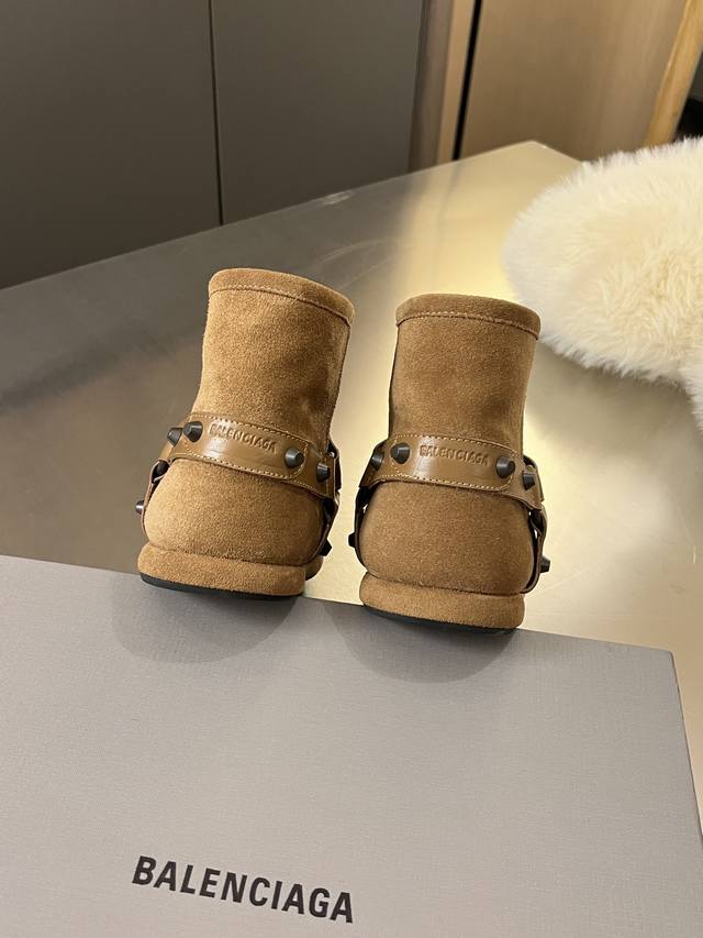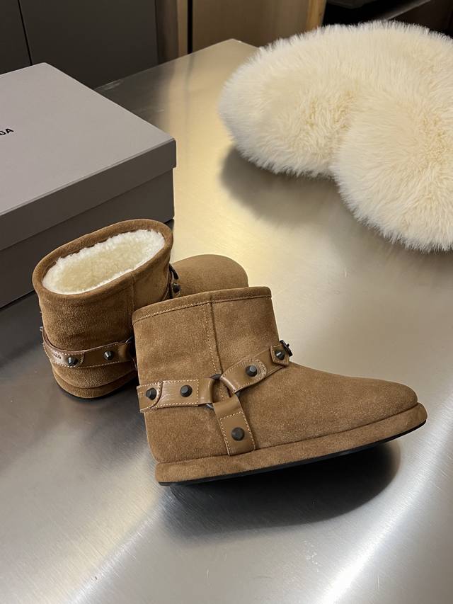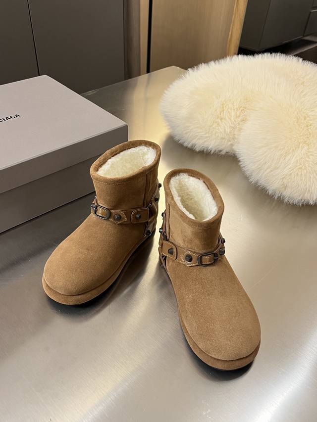 出厂价Pp: Balenciaga 巴黎世家 2025秋冬新款皮带扣铆钉雪地靴 简直不要太帅 设计感满满打破传统雪地靴的沉闷臃肿 个性十足 鞋面采用丝光牛反绒面