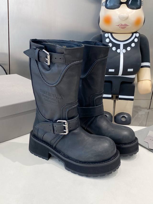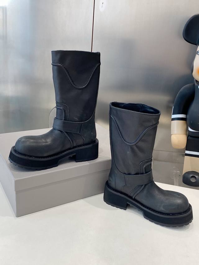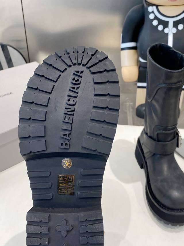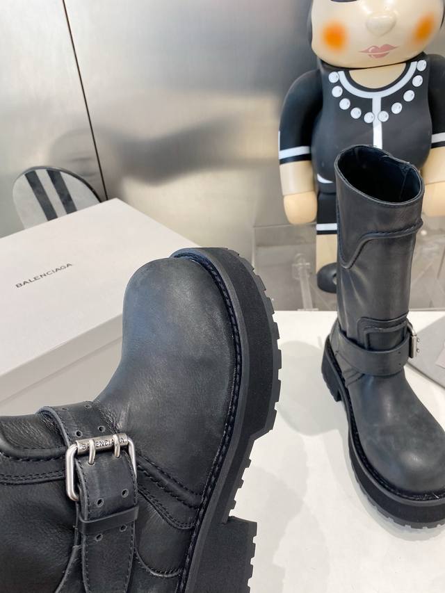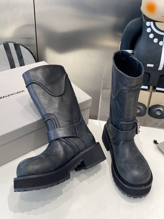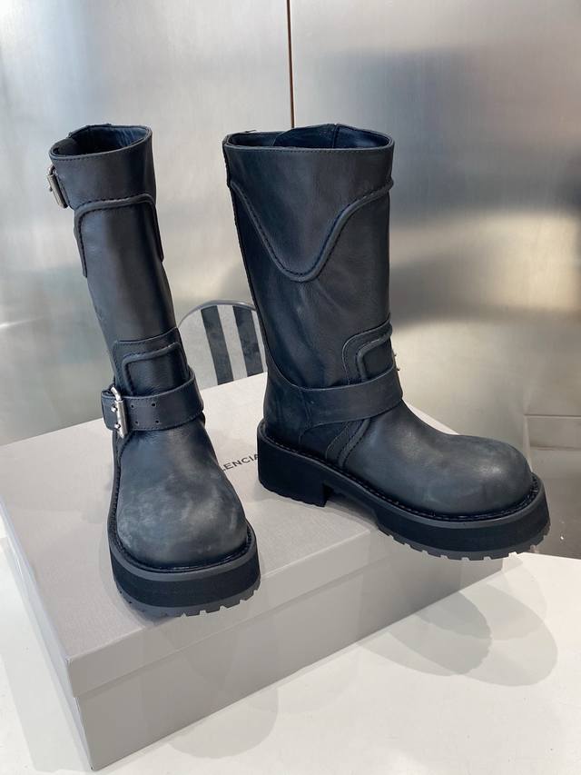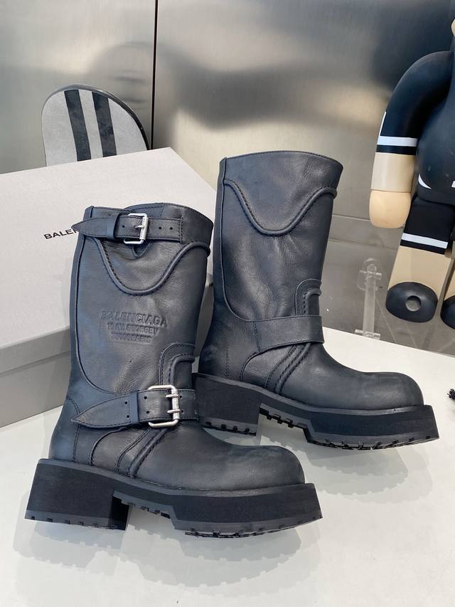 出厂 Balenciaga巴黎世家25Fw毒液Venom中筒靴 DDD 这款靴子在设计上独具匠心 以绑带与皮带元素作为亮点 不仅能将靴子稳固贴合于足部 更可随心调节松紧 在细节处理上 品牌标志性的做旧五金件贯穿始终 巧妙营造出复古磨损效果,彰显个性态度搭配厚实的齿状橡胶鞋底 既保证了穿着的舒适度,又强化了整体的时尚感与辦识度Venom中筒靴无疑是本季不容错过的时尚单品,它将为时尚爱好者们的穿搭增添别样魅力,引领新一轮的潮流风尚 DDD 鞋面:头层牛皮做旧处理 DDD 内里:进口水染牛皮 DDD 大底:原版