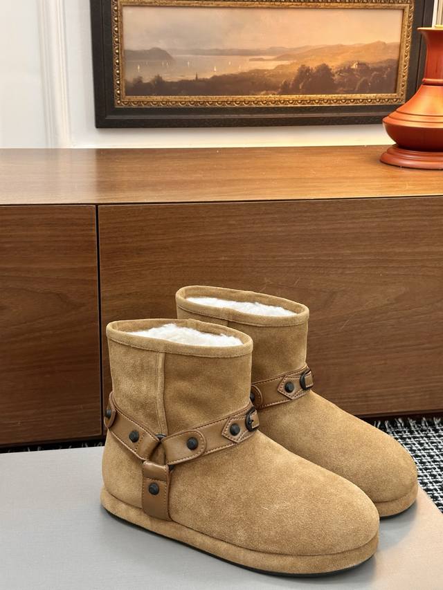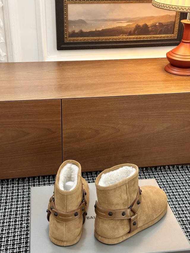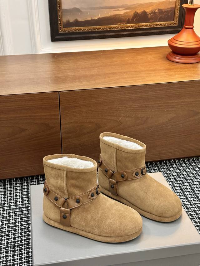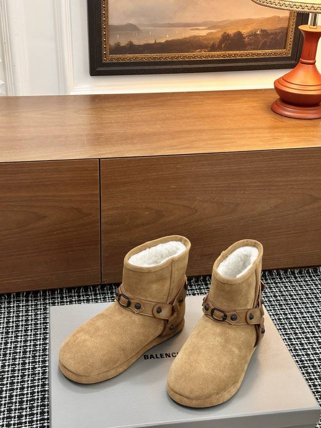 巴黎世家新款雪地靴 25Ss 新款添加了金属铆钉元素超级朋克街头简直太别致了 Ins爆款 原版购入开模全手工锁金属铆钉打造 所有的材质与工艺原版一致 质感满满