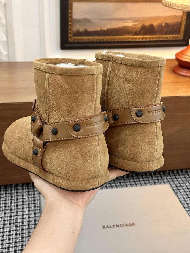 / 巴黎世家新款雪地靴 25Ss 新款添加了金属铆钉元素超级朋克街头简直太别致了 Ins爆款 原版购入开模全手工锁金属铆钉打造 所有的材质与工艺原版一致 质感满满