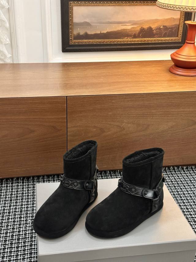 巴黎世家新款雪地靴 DDD 25Ss 新款添加了金属铆钉元素超级朋克街头简直太别致了 Ins爆款 原版购入开模全手工锁金属铆钉打造 所有的材质与工艺原版一致 质感满满 DDD 鞋面材质:原版翻毛牛皮 DDD 鞋底材质:牛皮包边大底 DDD 可选码数:35-41 DDD 原版包装 DDD