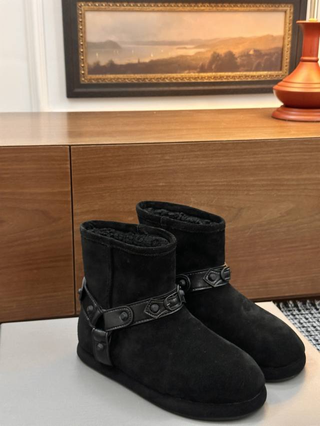 巴黎世家新款雪地靴 25Ss 新款添加了金属铆钉元素超级朋克街头简直太别致了 Ins爆款 原版购入开模全手工锁金属铆钉打造 所有的材质与工艺原版一致 质感满满