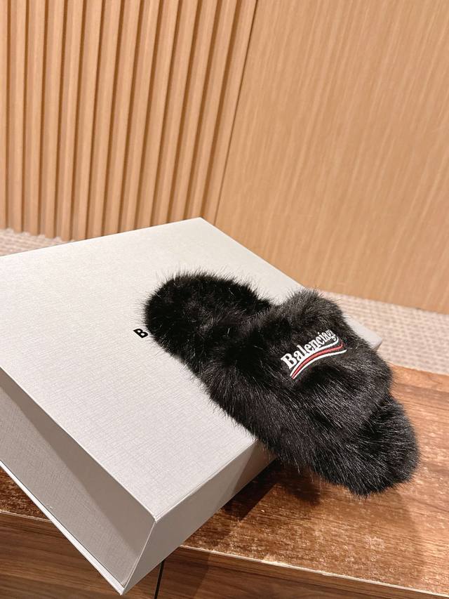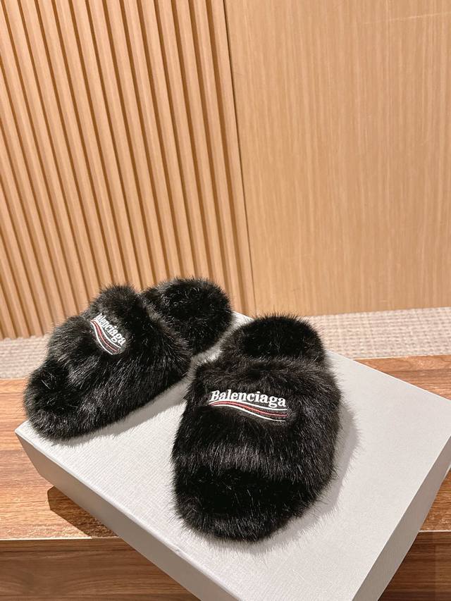 巴黎世家秋冬潮品羊毛拖鞋 徽标刺绣! 欧美名媛 明星 网红Girl 大爱款 精致鞋面手工缝纫走线 蓬松柔软 亲肤柔软冬季必备款 时尚却不过分张扬 原版天然橡胶防滑耐磨大底 Size:35-39 40定做不退换 DDD