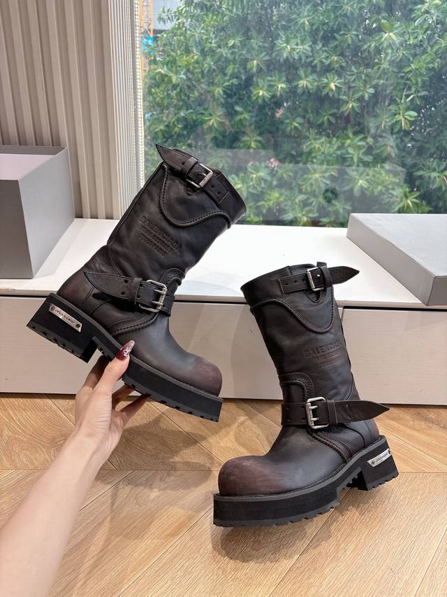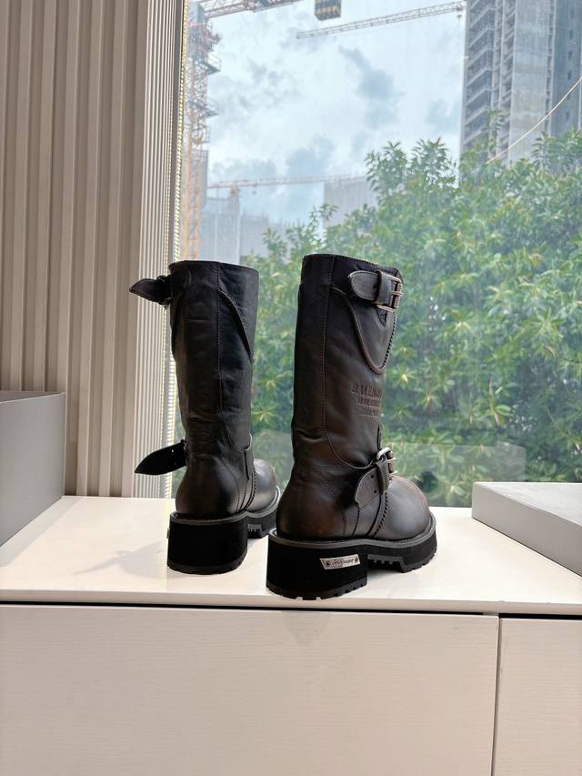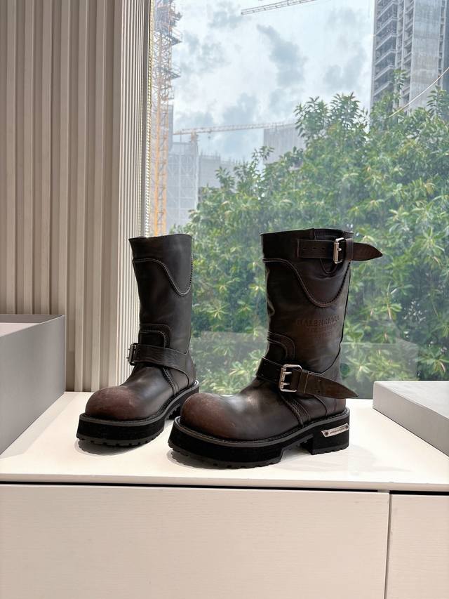 巴黎世家 军靴全新秋冬情侣高帮单鞋切尔西短靴破洞做旧复古风格,以崭新视角演绎“中古风”黑色百搭经典配色 大底鞋头处有品牌Logo DDD 鞋面:进口牛皮 重工艺