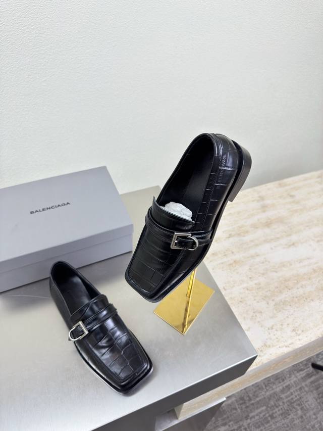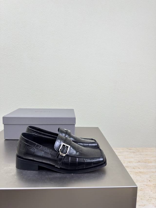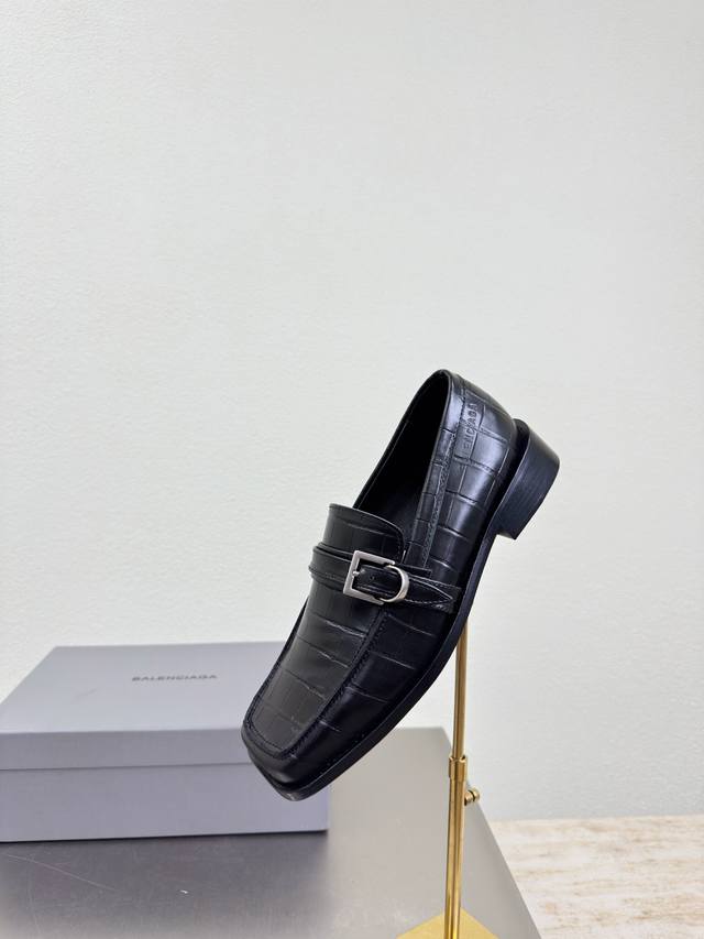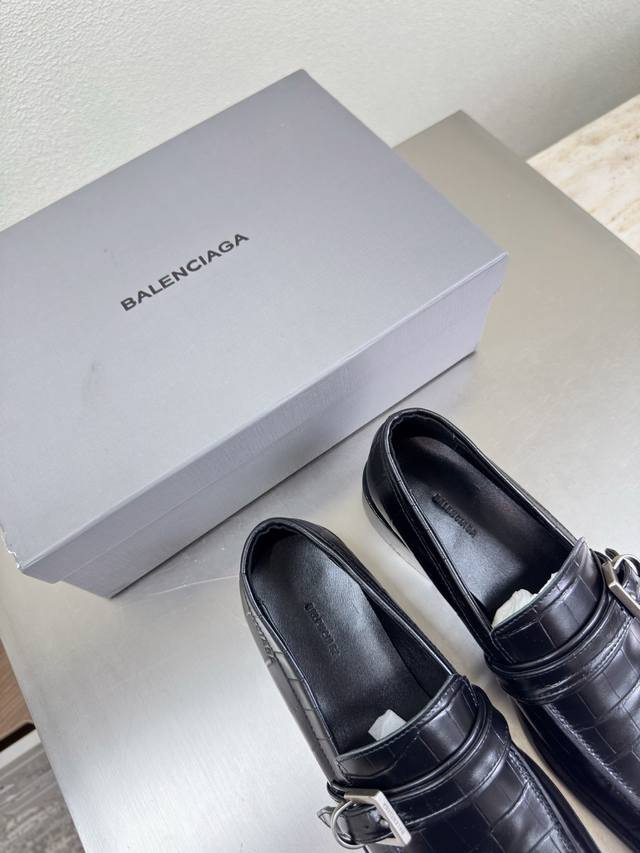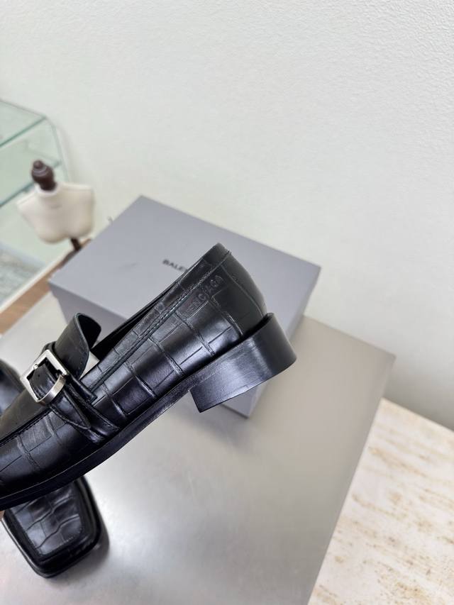 巴黎世家 方头乐福鞋 高定系列 Balenciag 专属特别金属圆球装饰 面料 黑色鳄鱼压纹牛皮 内里 小羊皮 黑色 顶级版本 全部对版材料 继续着Demna式