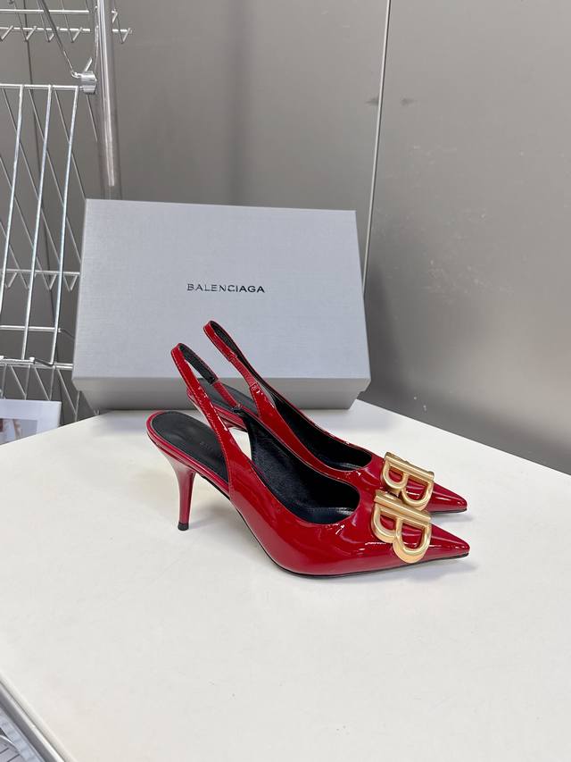 工厂p价p:凉鞋 单鞋 巴黎世家 Balenciaga 2025春夏新款尖头高跟后空女凉鞋 双B字母Logo五金扣气质女巫单鞋 市面最高品质...