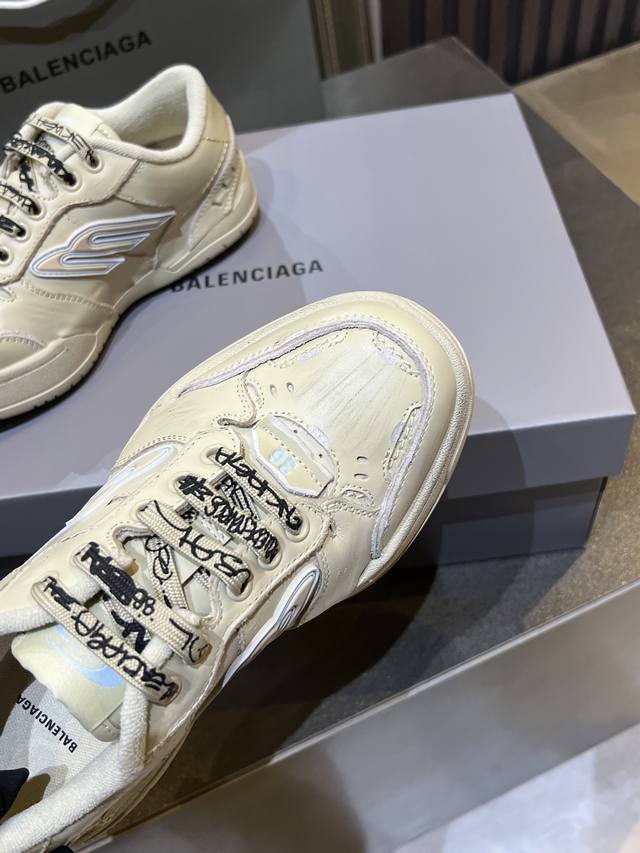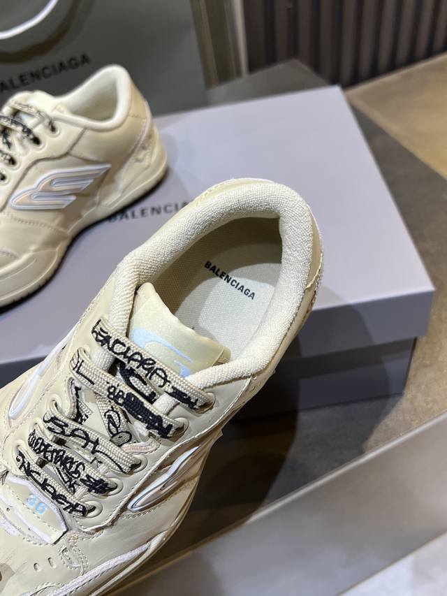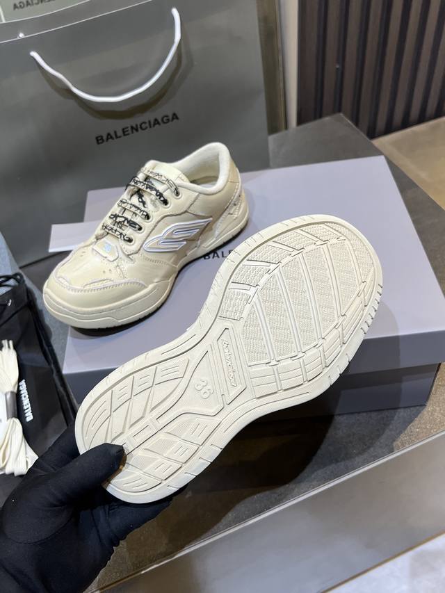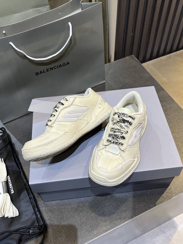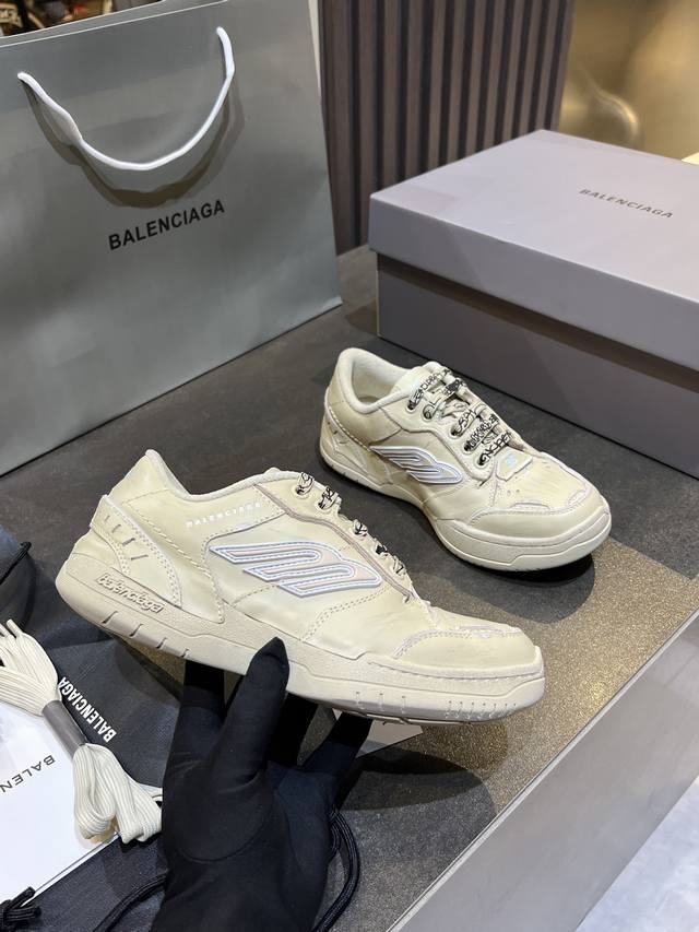 巴黎世家Balenciaga Winter25秋冬Hamp Tons运动鞋。创意鬼才Deanna掌舵下Winter25系列重塑时尚定义、而这款Hampton运动鞋尤为吸睛。 DDD 它以经典鞋履为原型、饰以3B Spores与Spores标志、打造流线型轮廓、精选真牛皮材质精制而成。 DDD 鞋面釆用不对称剪裁设计辅以毛边、满是做旧痕迹、磨损边缘外露缝线、细节处松脱的缝线以及车孔痕辸、刮擦痕辸与不对称设计营造出复古随性氛围。鞋带外途鸦式品牌标识与弯曲鞋头结构、自带Diy的不羁与个性。彰显独具一格的手工质感