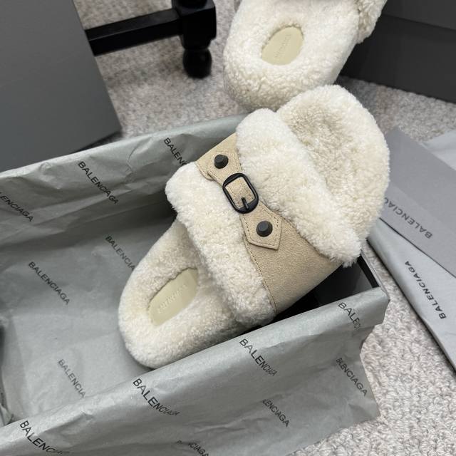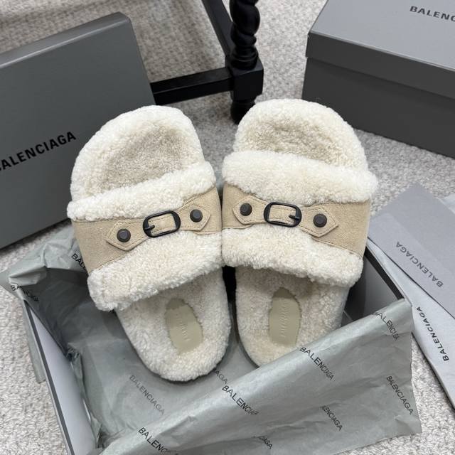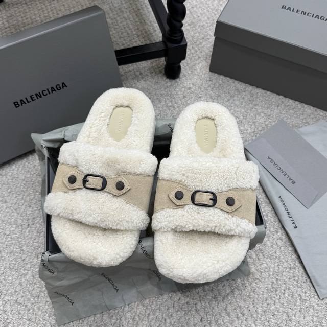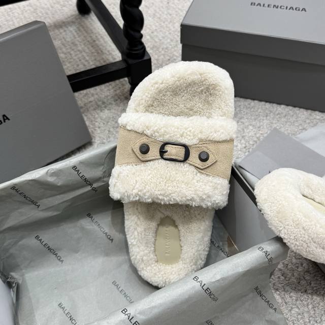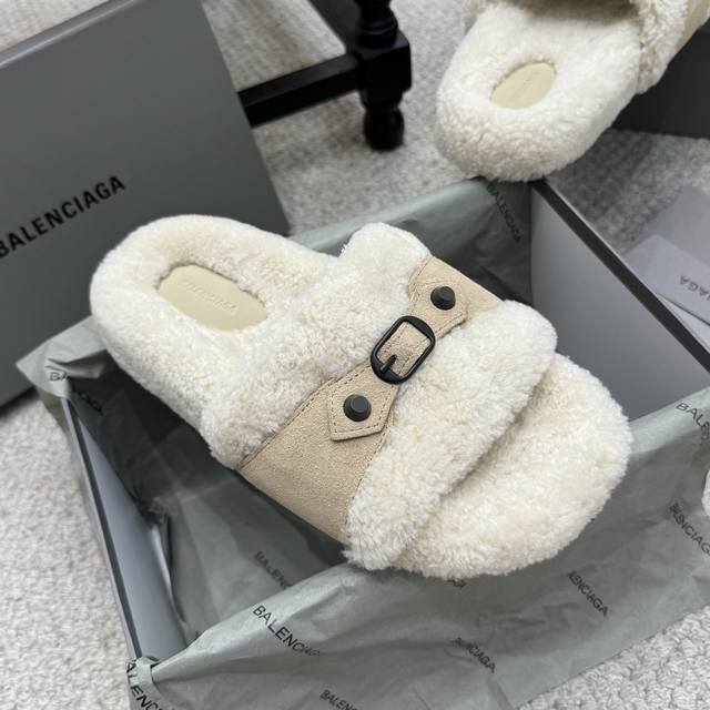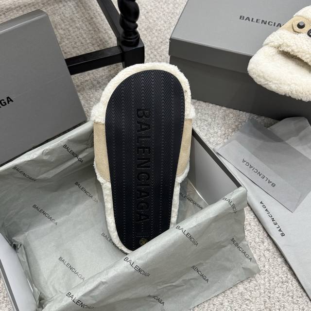 厚底 Balenciaga 巴黎世家 25Ss 秋冬 毛拖 鞋面字母图案 电绣徽标刺绣工艺 高级感满满当当 上脚特别漂亮 非常柔软舒适 面料羊卷毛...