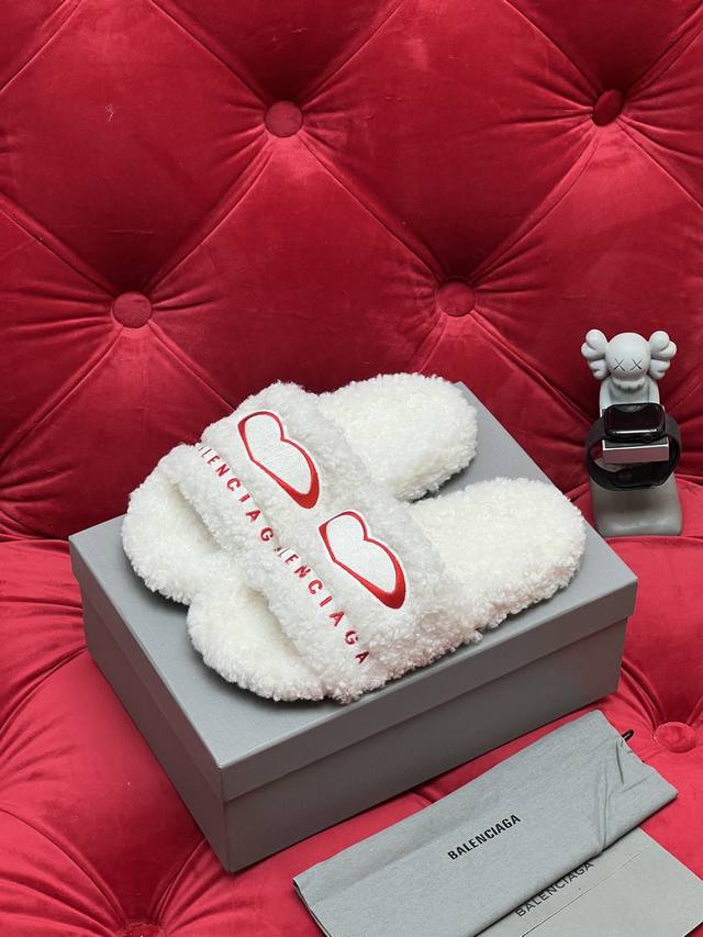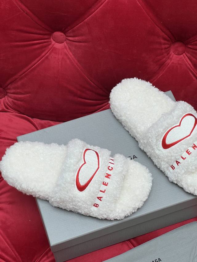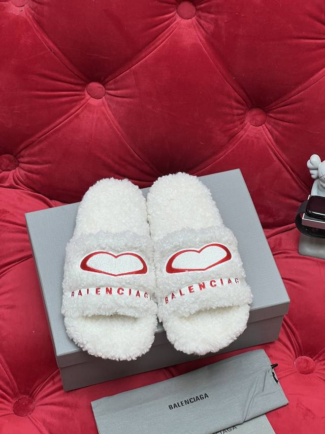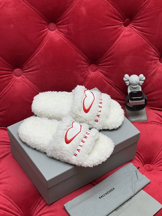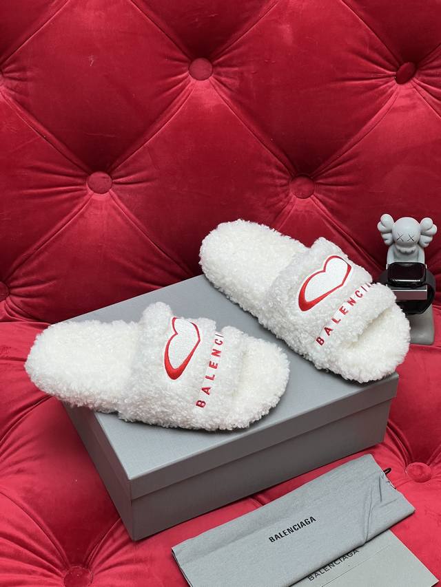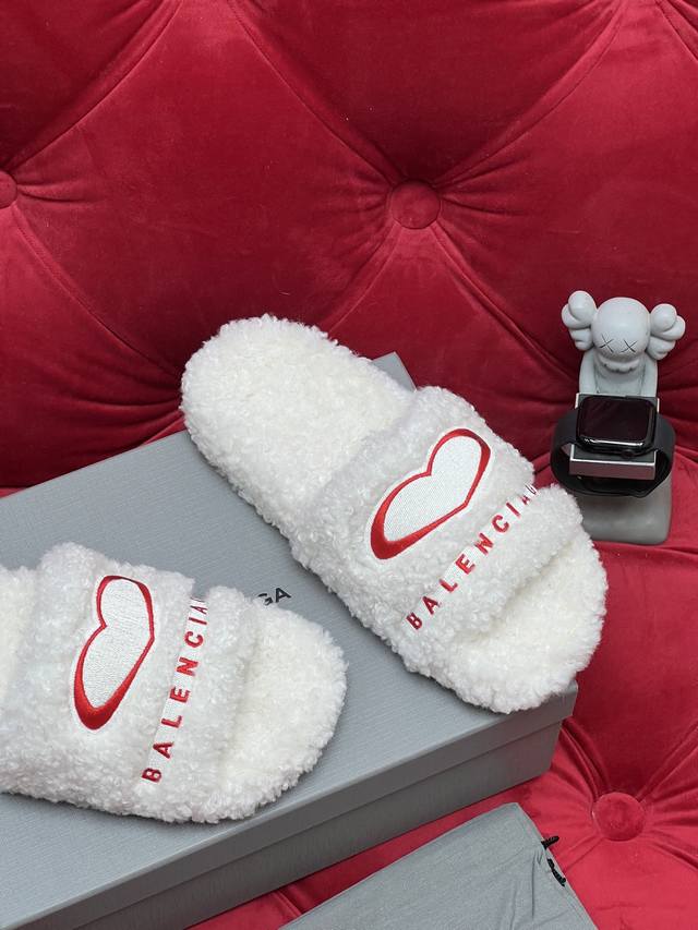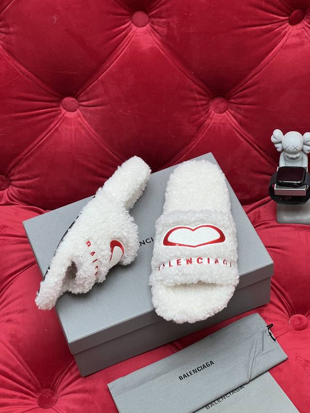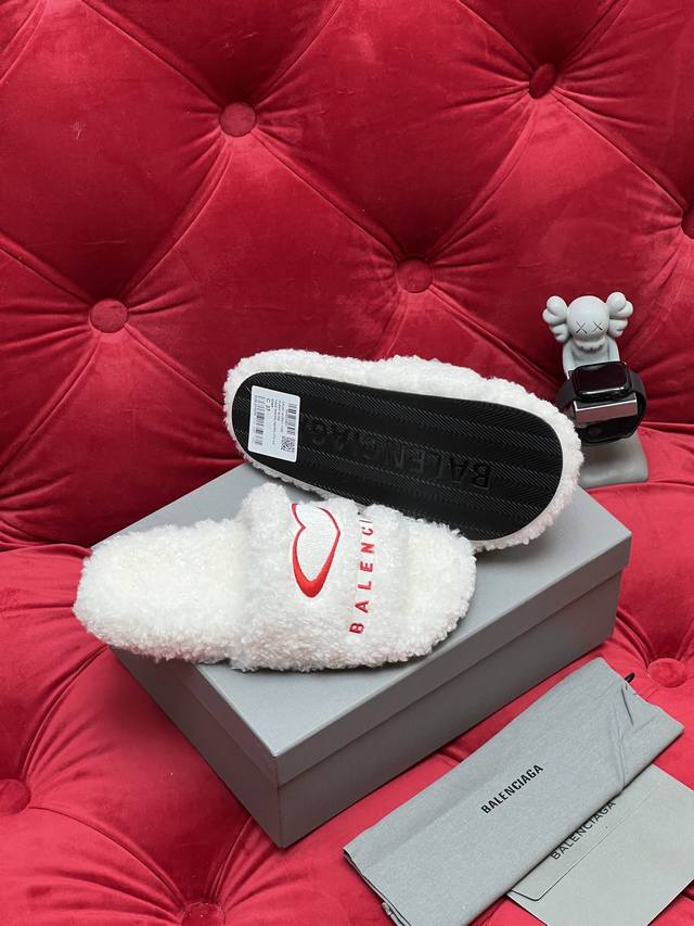 / 独家实拍 高版本 Balenciaga 巴黎世家26Ss 秋冬潮品 毛拖 鞋面字母图案 电绣徽标刺绣工艺 高级感满满当当 上脚特别漂亮 面料:羊卷毛 非常柔软舒