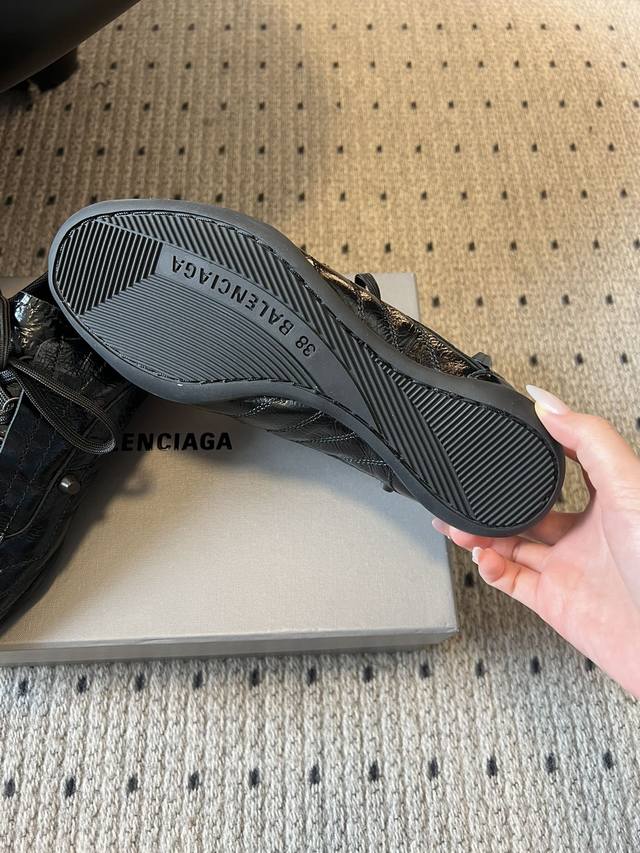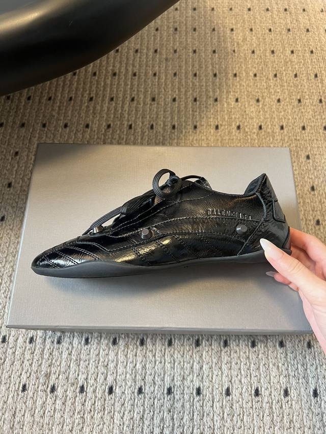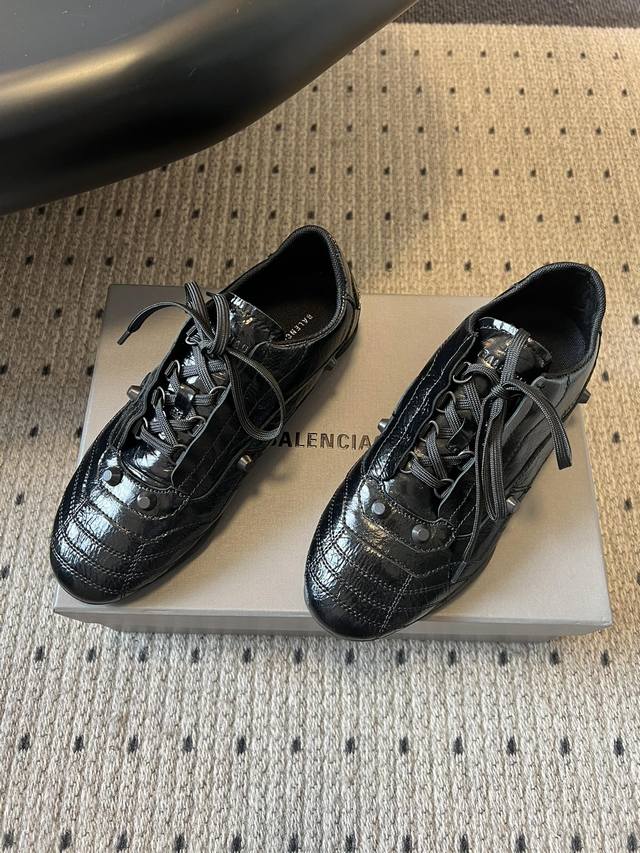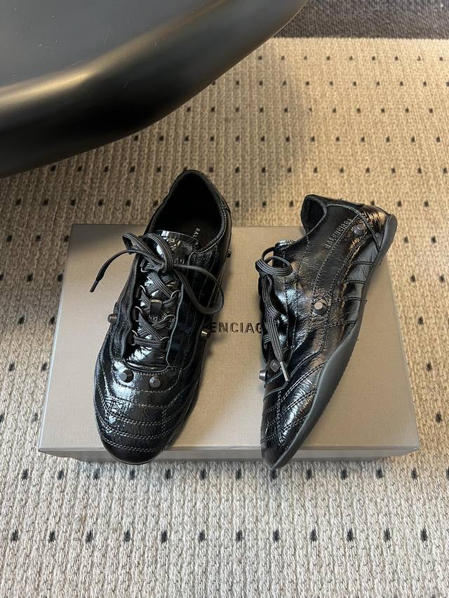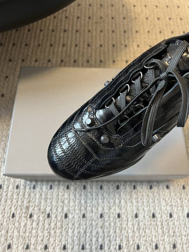 男款 Balenciaga 25Ss 运动风复古德训鞋 DDD 以复古足球鞋为原型,融合巴黎世家标志性的“时装运动风”,尖头+低帮轮廓自带复古腔调,同时通过亮色 特殊材质弱化运动感,更像搭配造型的时尚单品。鞋面采用压纹皮革,自带细腻光泽和高级质感;部分颜色用了金属感涂层,增加吸睛度。 DDD 鞋身有铆钉装饰+车线纹理,既保留了足球鞋的经典元素,又通过精致工艺提升了奢华感;鞋带与鞋身同色,整体风格统一。色彩选择丰富,既可以搭休闲裤 牛仔裤走街头风,也能配裙装打造“甜酷反差感”,是近年很火的“时装球鞋”类型。