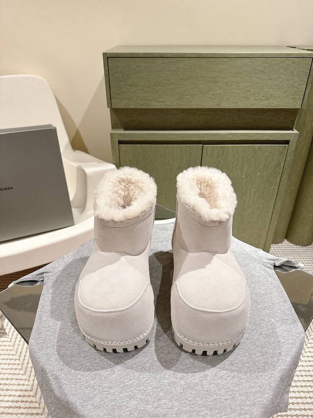 顶级品质 25Ss秋冬新款Balenciaga巴黎世家雪地靴 直筒羊毛一脚蹬短靴...
