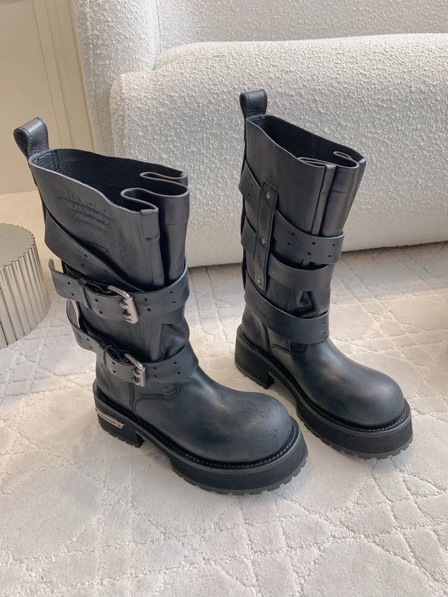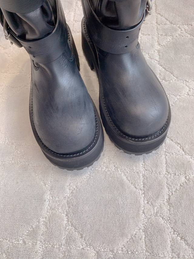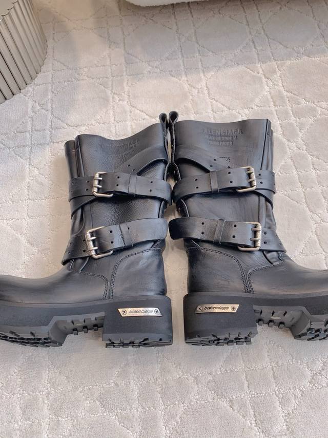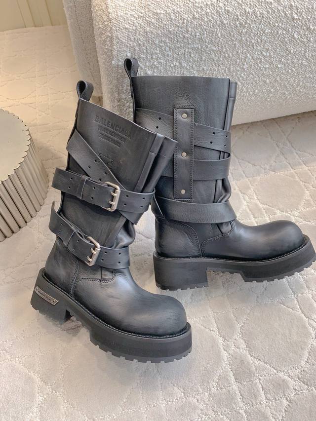 / 矮靴 12寸 15寸 Balenciag*新款做旧机车靴毒液马丁靴升级版时尚宠儿又添一员大将!一出场就气场全开!独特的翻折设计,搭配搭配个性金属扣带,打破常规,