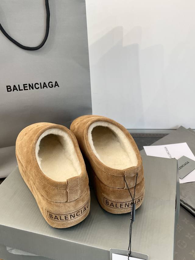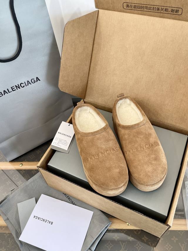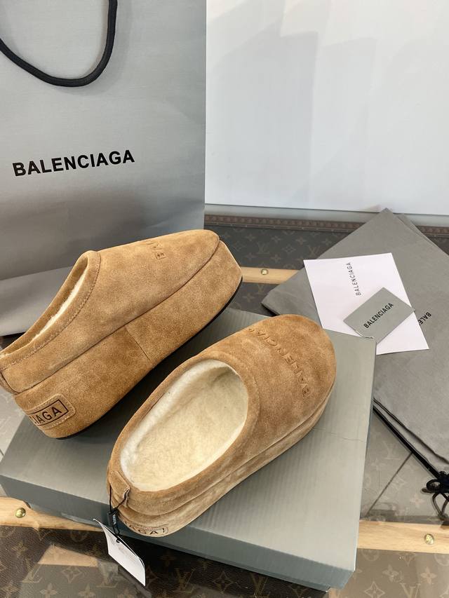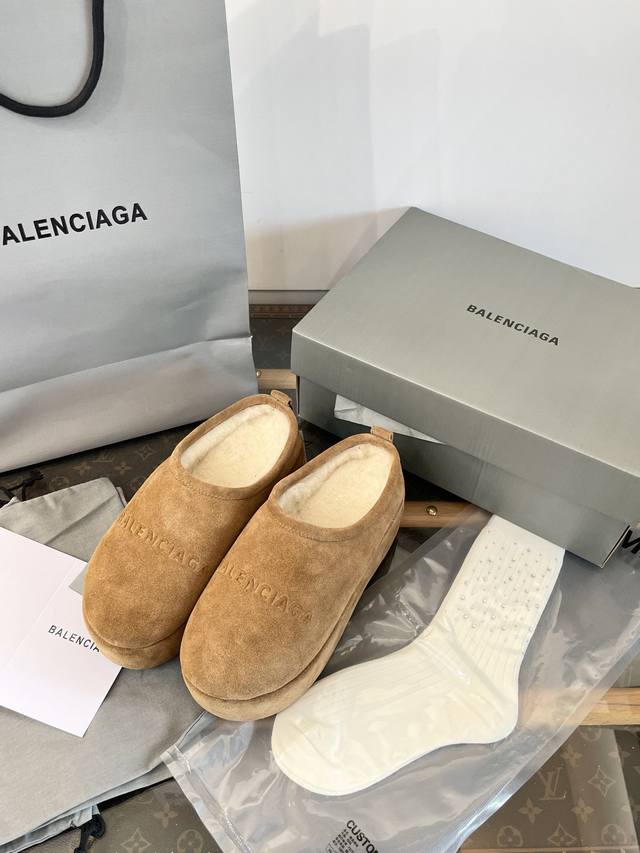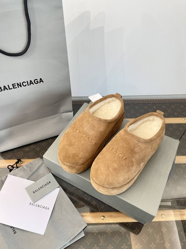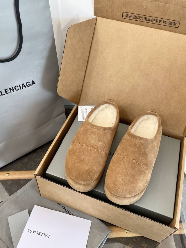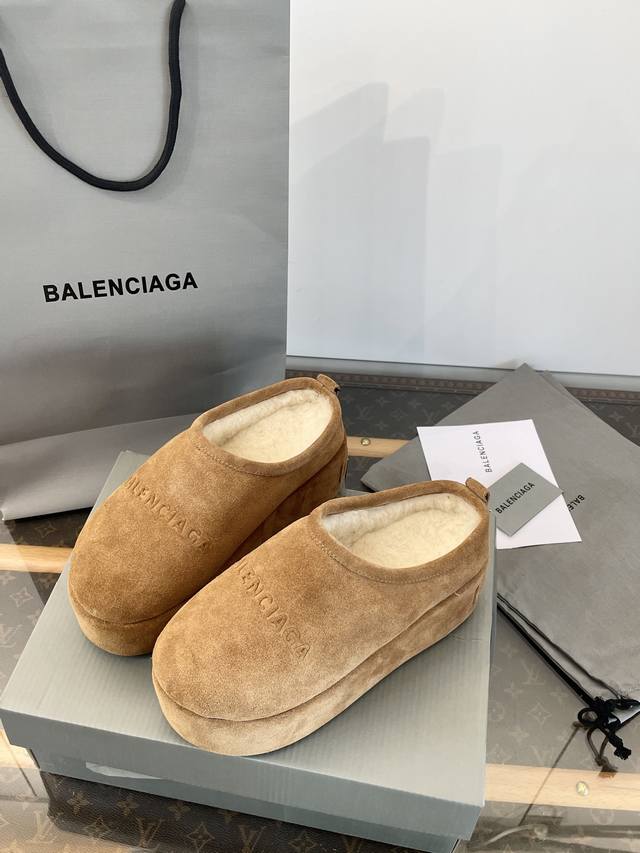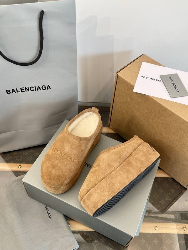莞产 巴黎世家Alaska Soft厚底穆勒毛毛拖鞋 莞大厂顶级高端品质 巴黎世家厚底博肯毛毛拖 6.5Cm厚底~脚感轻盈~增高又显腿长 毛绒绒暖Fufu~非常