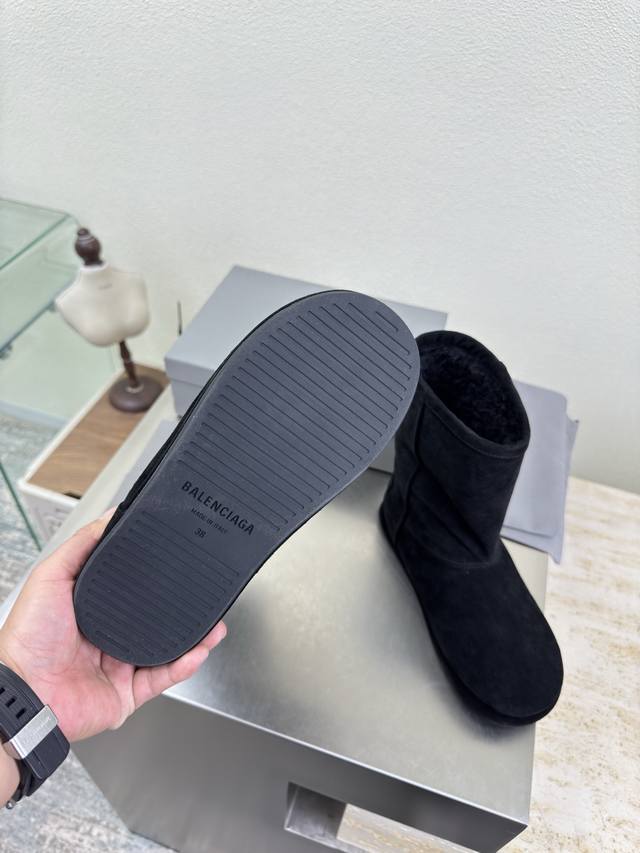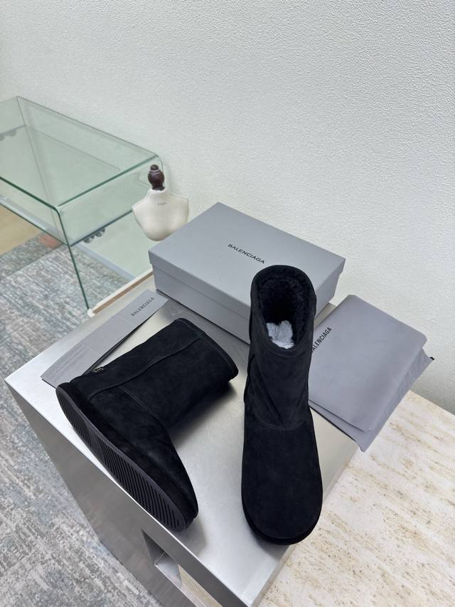 雪地靴 Balenciag 厚底 羊毛里 DDD 中筒雪地靴 黑色 高丝光牛反绒皮 DDD 内里 绵羊毛里 DDD 羊毛里设计 巴黎世家 经典 DDD 顶级版本 全部对版材料 DDD 继续着Demna式的对主流华丽时尚的反叛态度 DDD 透染工艺 DDD 家族元素 后跟部位 车至 品牌字母大Logo DDD 特别跟型设计 带家族Logo DDD 原版一致 大Logo Tpu 成型大底 DDD 码数34 35 36 37 38 39 40 41 DDD 34 40 41 定制不退换 DDD 配原版包装 DD