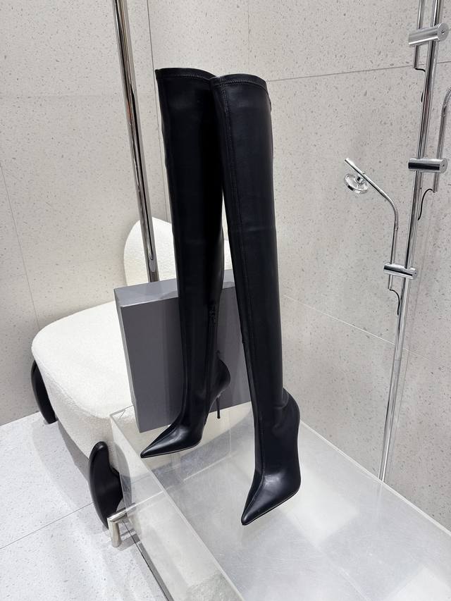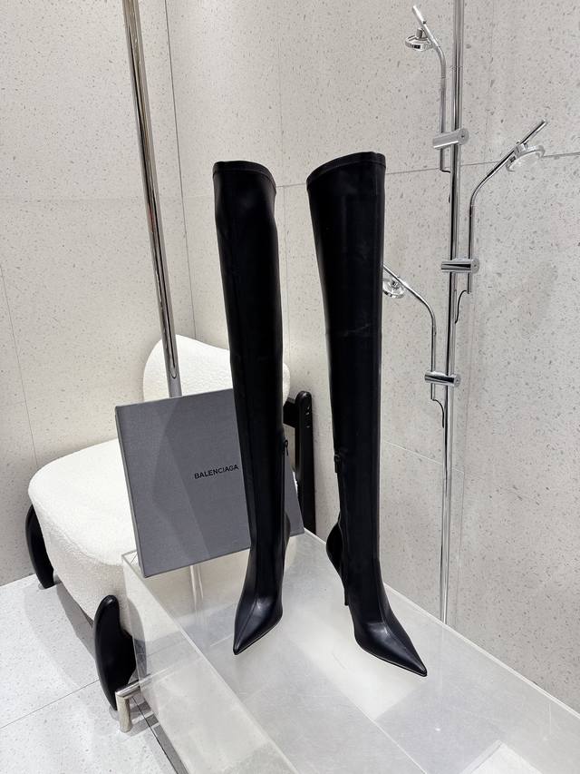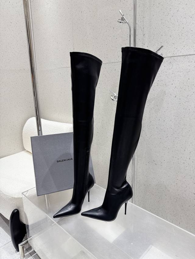 顶级品质 Balenciaga 巴黎世家秋冬新款尖头高跟弹力靴 长靴 鞋面:进口弹力皮 里衬:布+羊皮 鞋底:意大利真皮大底 跟高:10.5Cm Size:35