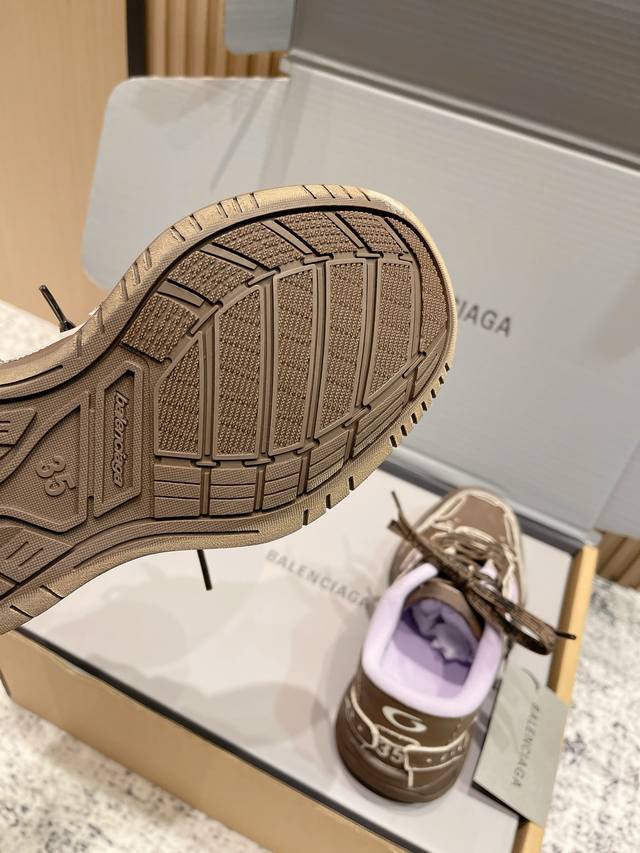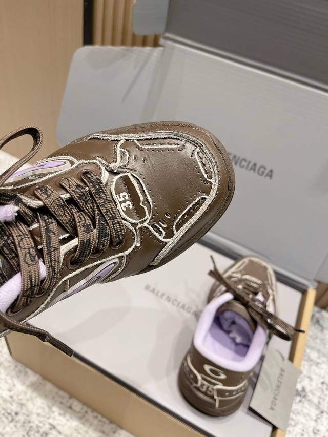 顶级版本:情侣款 Balenciaga巴黎世家 最新Hamptons系列 情侣款 破损 做旧 休闲 运动鞋 原版购入开发 做货 Hamptons Sneaker这款新鞋延续了创意总监Demna一贯的美学风格,融入了毛边设计、外露缝线、不对称细节、做 刮痕,以及涂鸦风格的鞋带字样和明显的鞋头弧度。不同于此前夸张厚重的3Xl和 Cargo等款式,Hamptons Sneaker 在轮廓上有所收敛,采用了巴黎世家较少使用的更为传统的鞋底结构,并配有拼接皮革鞋面,使整体造型更加日常但依然不失个性 配送专柜精美包装