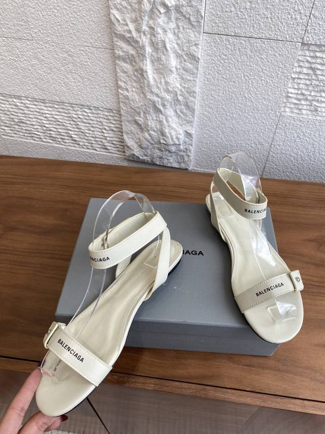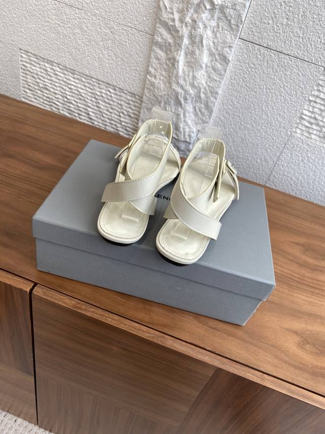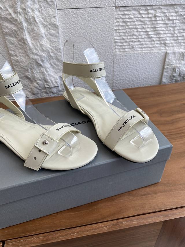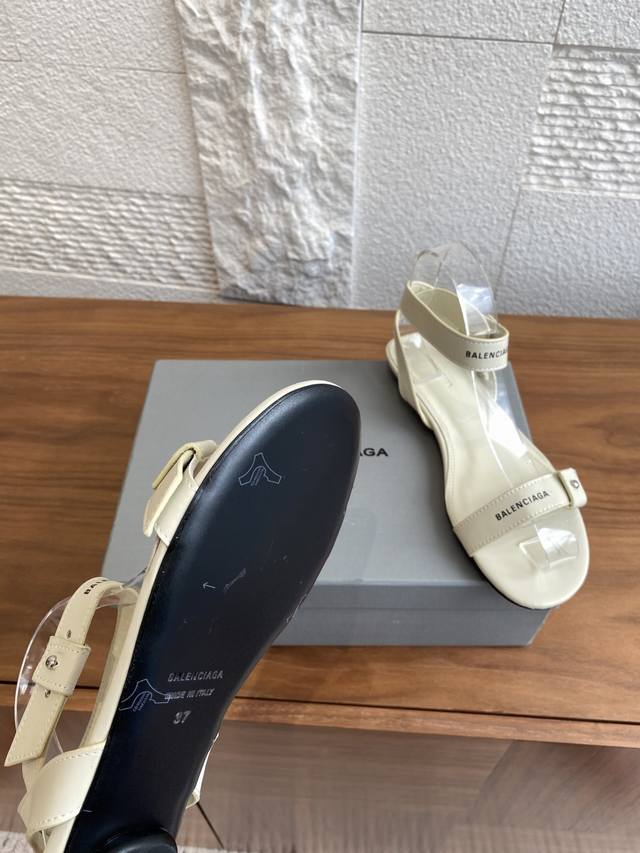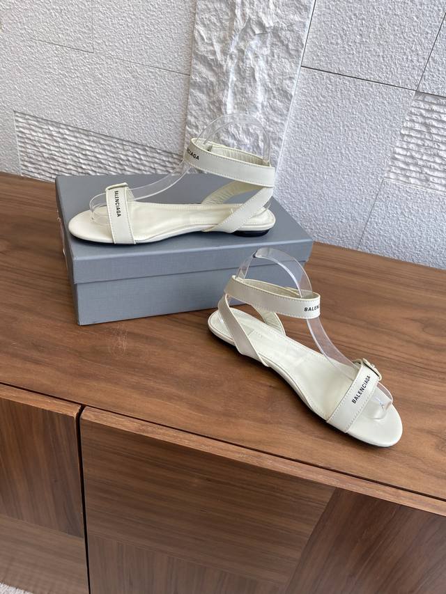 顶级版本: Balenciaga巴黎世家 25Ss 夏季新品 一字带 扣带 交叉后绕带 平底 凉鞋 巴黎世家平底凉鞋简洁而不失个性,采用牛皮面设计一字扣带式和交