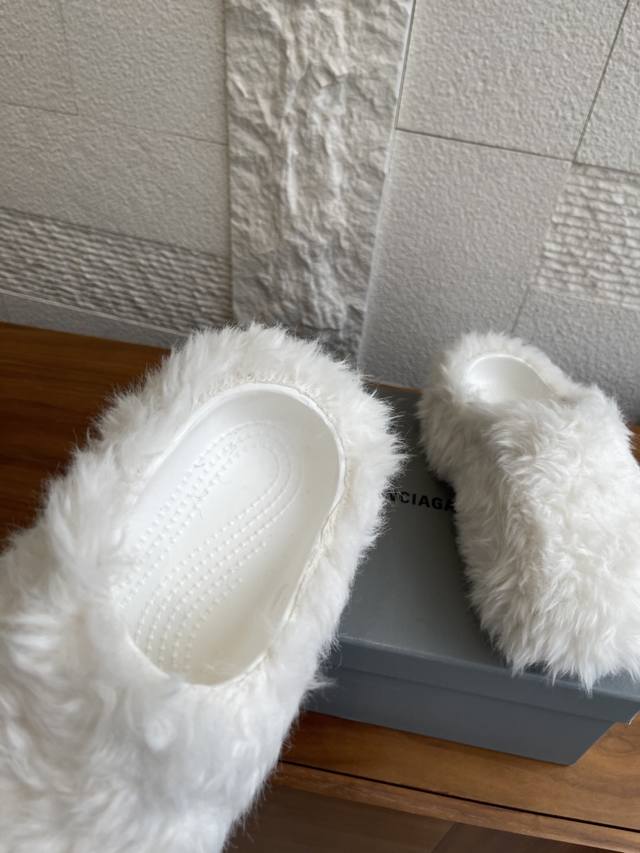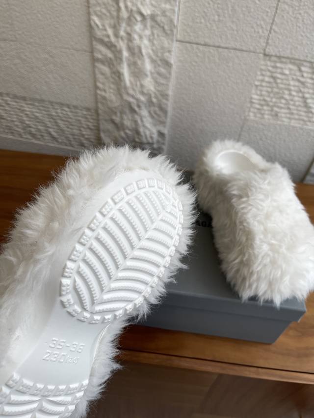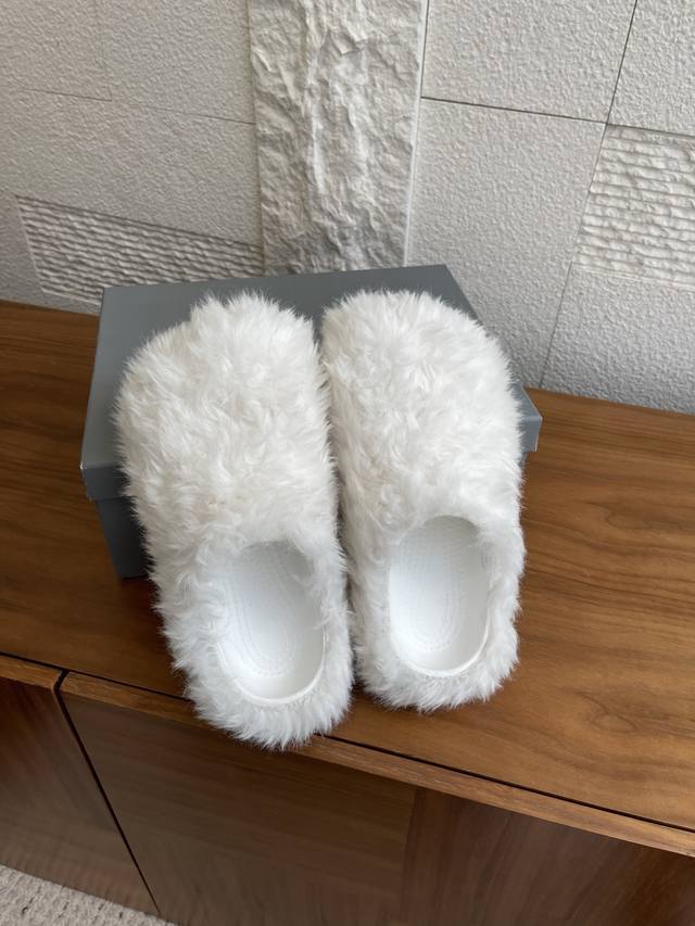 顶级版本: Balenciaga巴黎世家25Ss 秋冬新款Crocs 联名款 穆勒鞋 厚底 羊毛拖鞋 情侣款 Balenciaga与Crocs 联名款穆勒鞋,鞋