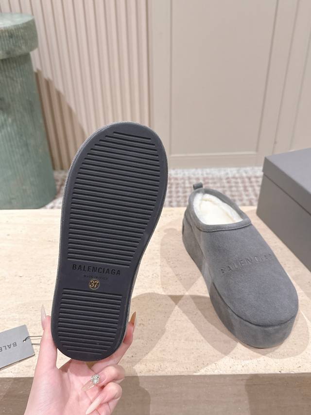 顶级版本: : Balenciaga 巴黎世家新款厚底毛绒拖鞋 DDD 采用卡其色麂皮材质打造鞋面,质感细腻且富有复古气息;鞋内填充毛绒材质,兼具保暖性与舒适感。 DDD 拥有夸张的厚底设计,瞬间提升造型的时尚感与层次感;鞋面上压印着品牌标志性的“Balenciaga”字样,是品牌身份的直观体现;后跟处设有小巧的提带,既方便穿脱,又为整体设计增添了细节亮点。 DDD 鞋面:牛反绒 DDD 内里:羊毛 DDD 大底:原版开模大底 DDD Size:35-39 40定制不退换 DDD