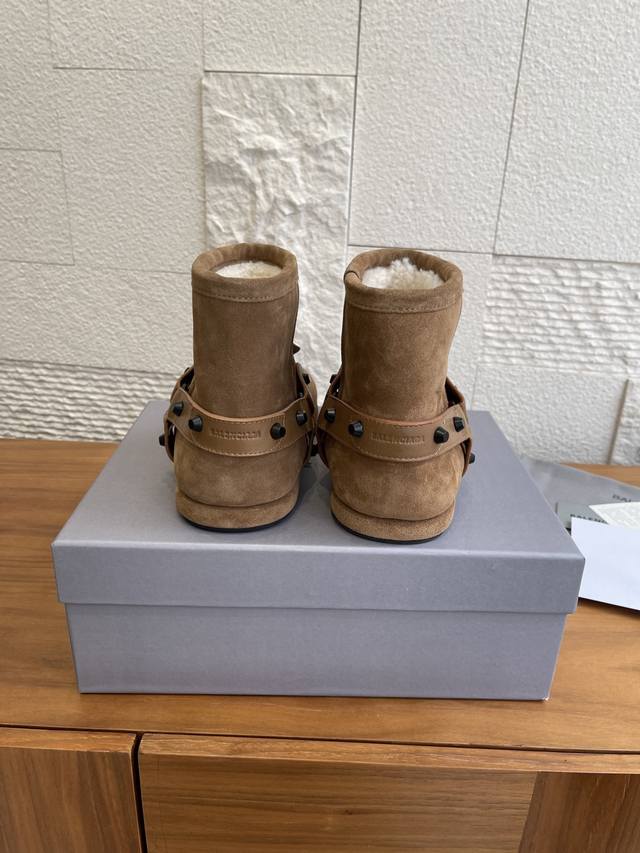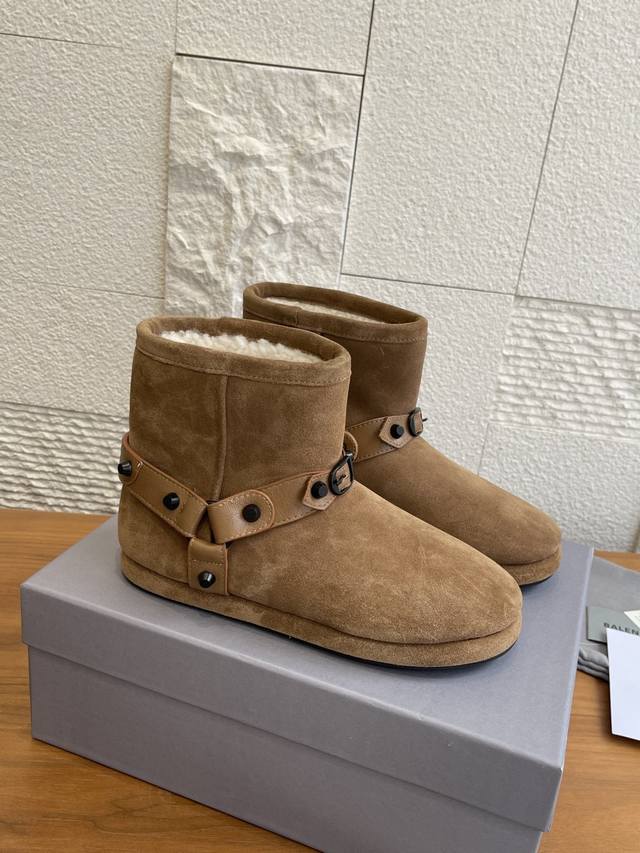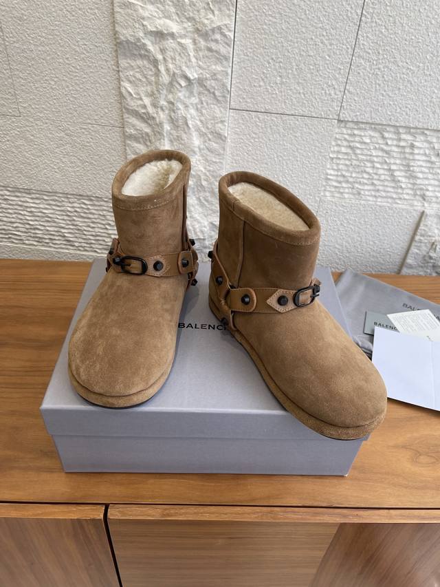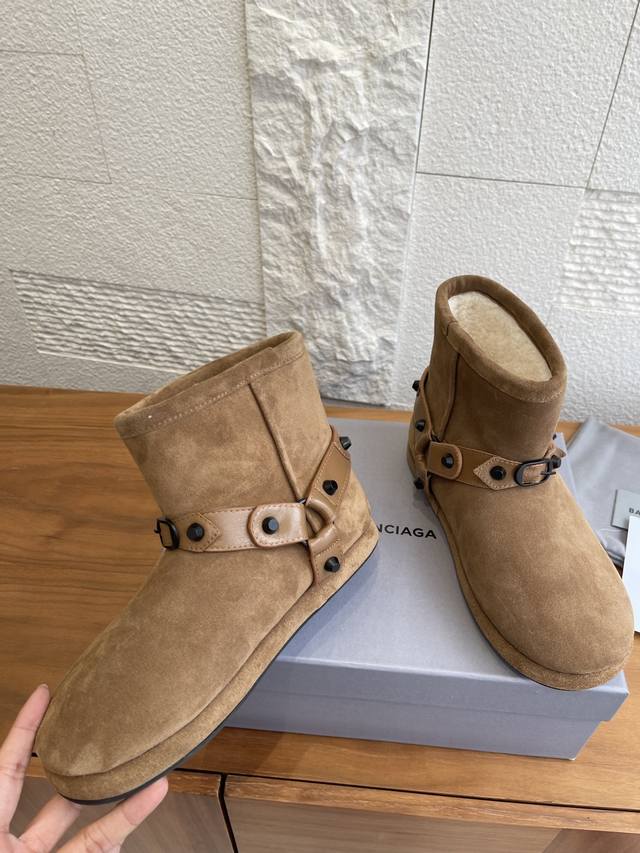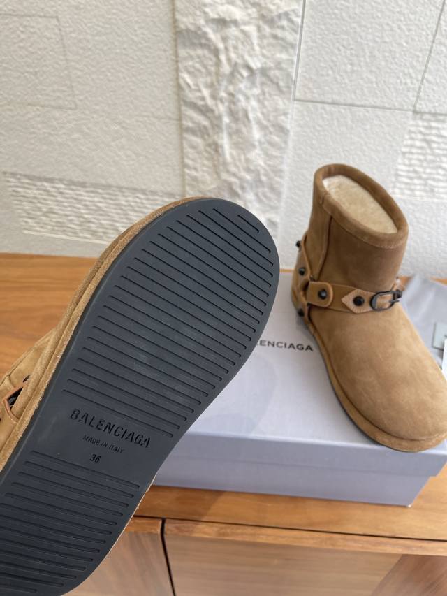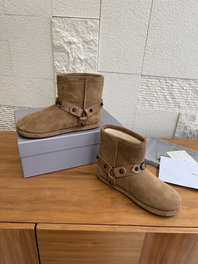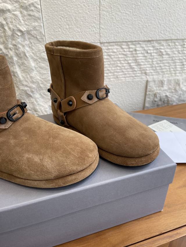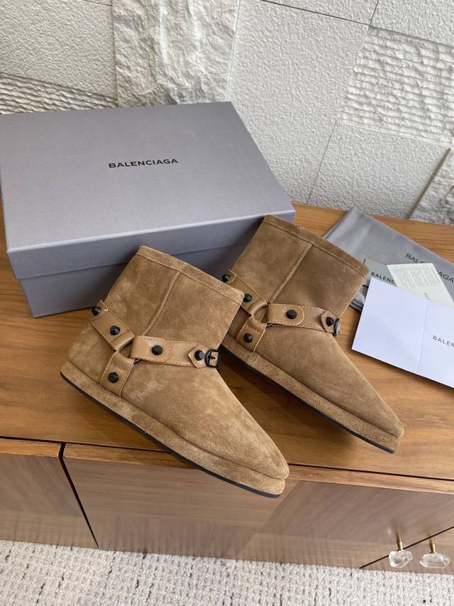 顶级版本: Balenciaga 巴黎世家 2025 秋冬新款 皮带扣 雪地靴 这款巴黎世家雪地靴绝绝子~麂皮加毛绒,上脚软乎平巨保暖。搭黑色工装裙+白袜,甜酷