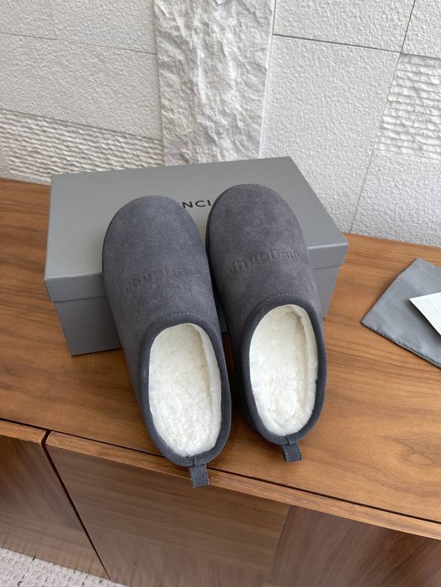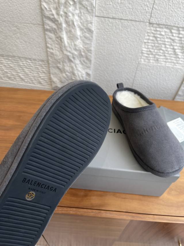顶级版本: Balenciaga 巴黎世家 25Ss 秋冬新款Alaska Soft薄底 穆勒鞋 毛拖 时装博主与欧美明星大爱款 冬季必备款 时尚却不过分张扬鞋面磨砂皮 内里真毛特别的蓬松柔软、亲肤脚感特别舒服 精致的手工缝纫走线 鞋面Logo高级感满满 大底高度5Cm 原版橡胶防滑耐磨底 面料:进口牛皮绒面 内里:进口羊毛 大底:原版开模橡胶大底 Size:35-41 40 41定做不退换