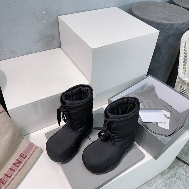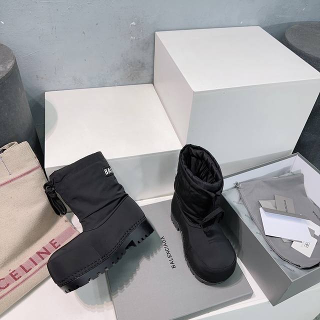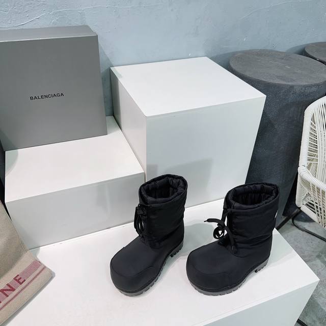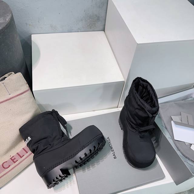 高品质出厂女 !男390!顶级品质情侣款!Balenciaga巴黎世家25Ss秋冬新款雪地靴滑雪系列厚底大头防水羽绒靴! Skiwear最新款阿拉斯加雪地靴 原版购入开发!细节质感完美复刻! 设计师推出探索时尚界对于原创与挪用的概念、以全新系列致敬传承与经典!以标志性Balenciaga抽象打破常规设计 碰撞出诙谐又和谐的新创意! 原版定制防水科技布料 内置鸭绒 保暖柔软舒适 羊皮垫脚 原版开模成型防滑橡胶大底 码数:女35-40 40定做不退换 :男39-45 45定做不退换 配原版包装