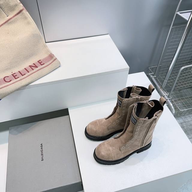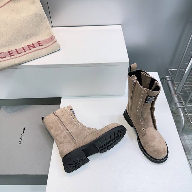 高品质出厂靴女 !男 !顶级品质情侣款!Balenciga巴黎世家25秋冬新款情侣款厚底乐福鞋机车朋克风马丁靴侧拉链短靴系列! 暗黑机能风!出门炸街气场爆表 液靴的设计极具辨识度,利落的线条搭配金属扣饰,每一处细节都彰显着的前卫态度。皮革质感上乘,光泽内敛却又奢华尽显,脚感更是舒适与格调并存。 无论是搭配修身牛仔裤展现街头酷感,还是与个性裙装碰撞出别样火花,它都能轻松Hold住。穿上它,你就是街头最吸睛的存在,将时尚态度完美诠释 鞋面采用进口小牛皮 高丝光牛反绒 内里垫脚水染羊皮 鞋底3层组合-真皮沿条回