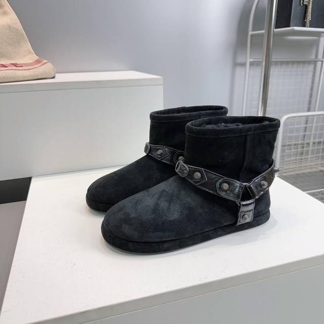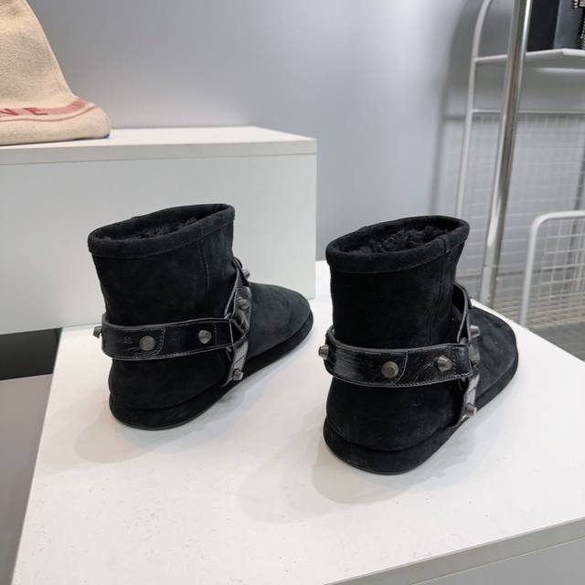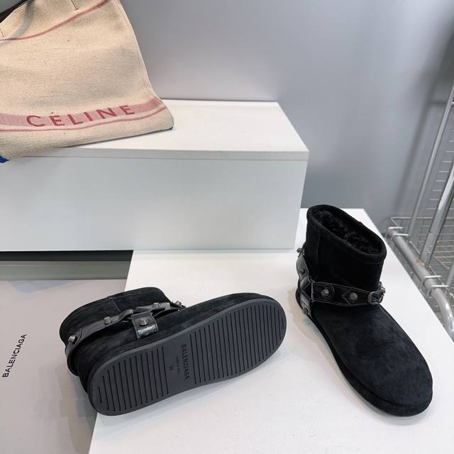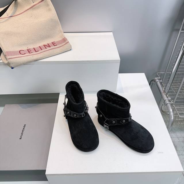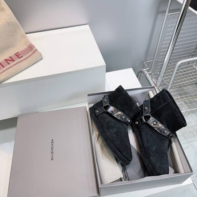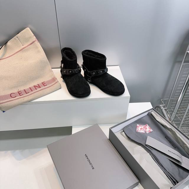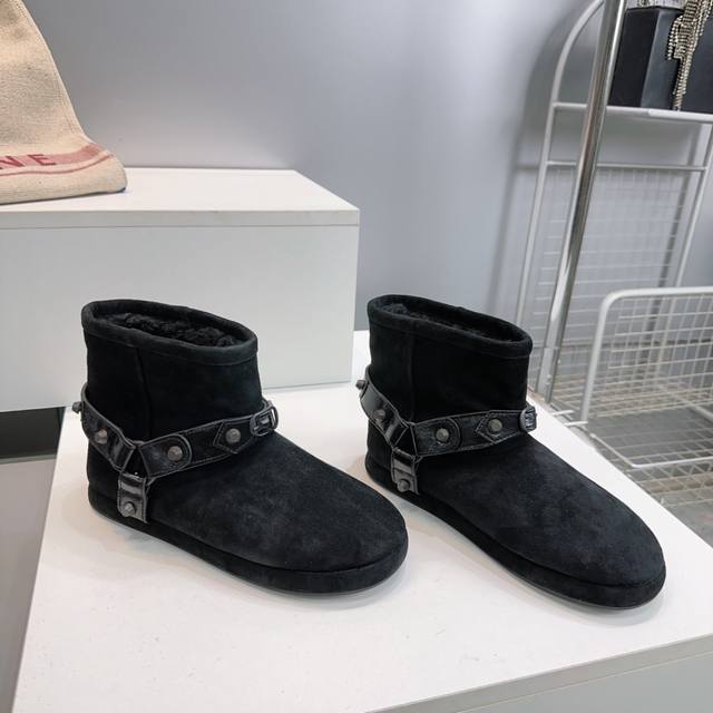 高品质出厂 !顶级品质Balenciaga 巴黎世家 2025秋冬新款皮带扣铆钉雪地靴羊羔毛保暖短靴!简直不要太帅 设计感满满打破传统雪地靴的沉闷臃肿 个性十足! 鞋面采用丝光牛反绒面料 细腻高级感拉满 整个内里采用纯羊毛 保暖舒适 橡胶大底防滑耐磨 给潮湿的冬季加上一层安全锁 穿上安全感满满! 鞋面采用牛反绒 内里进口澳洲羊毛 原版开模发泡大底 码数:35-41 40 41订不退换 配原版包装