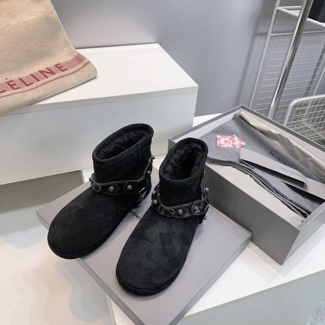 / 高品质出厂 !顶级品质Balenciaga 巴黎世家 2025秋冬新款皮带扣铆钉雪地靴羊羔毛保暖短靴!简直不要太帅 设计感满满打破传统雪地靴的沉闷臃肿 个性十足