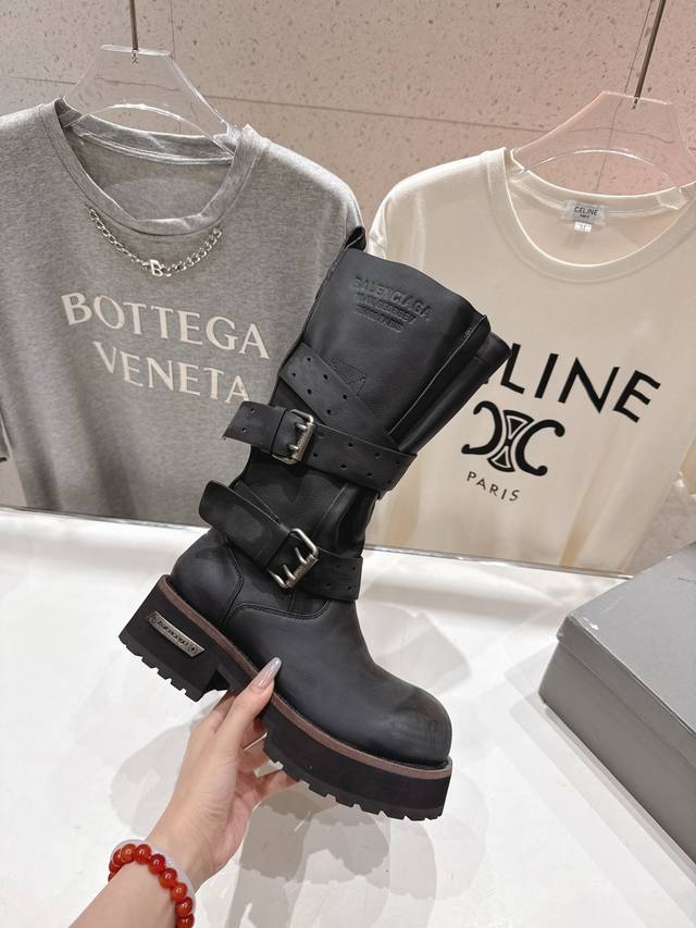 高版本出厂 Balenciag*巴黎世家2025Ss秋冬新款搭扣中筒机车靴马丁靴采用原版同步柔头层小牛皮 上脚舒适 个性帅气的的同时 不失舒适感 绝对吹爆酷帅酷