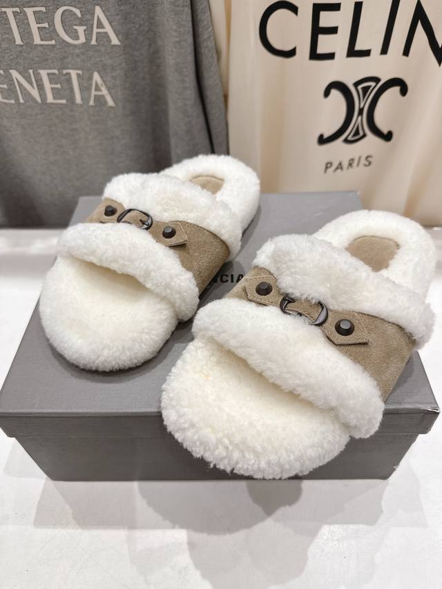 高版本出厂 Balenciaga*巴黎世家F027 25Ss秋冬新款平底羊毛拖鞋毛毛鞋 冬日凛凛不可缺之一,闭眼入都是不会后悔 上脚非常舒服超舒服 Zp订制材料
