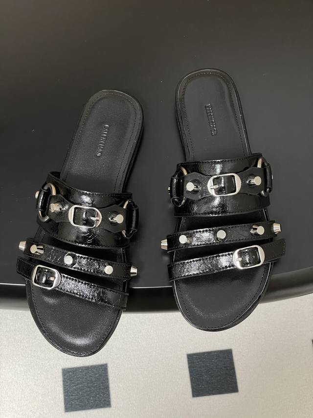 25Ss春夏新款Balenciaga金属铆钉机车朋克风平底拖鞋