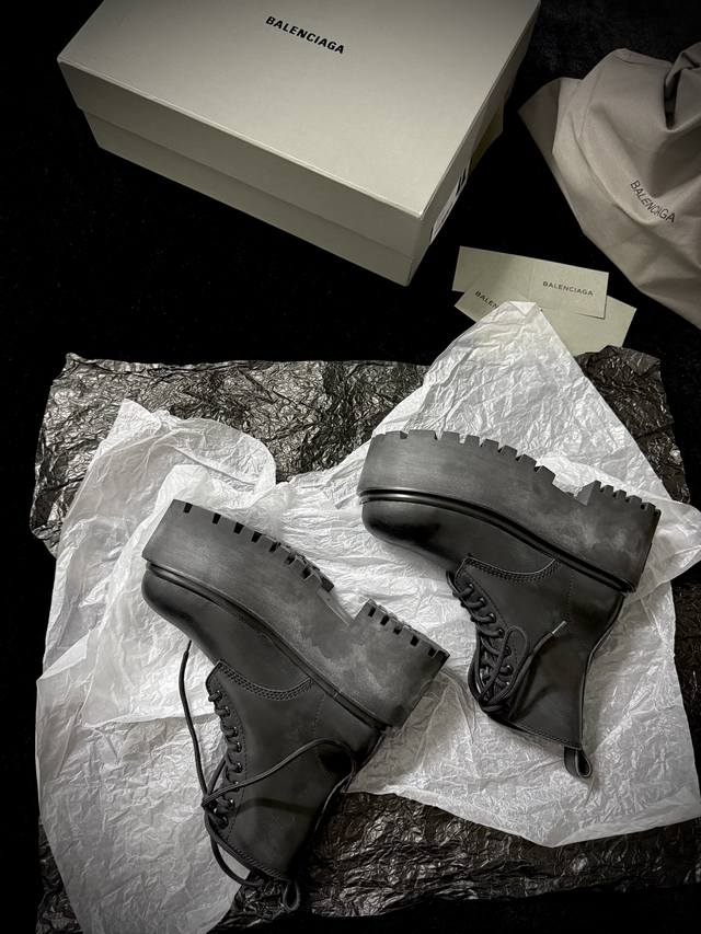 Balenciag* 新品 厚底马丁靴 简直是酷感时髦的代名词 质感十足的黑色皮革 彰显不羁态度 极具个性的厚底设计 不仅增高 还让每一步都踏出强大气场 鞋面进口树膏牛皮 内里进口牛皮 Zp开模大底 底高7.5Cm 35-39 40定