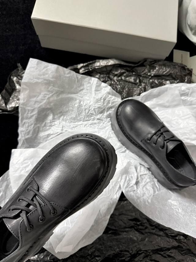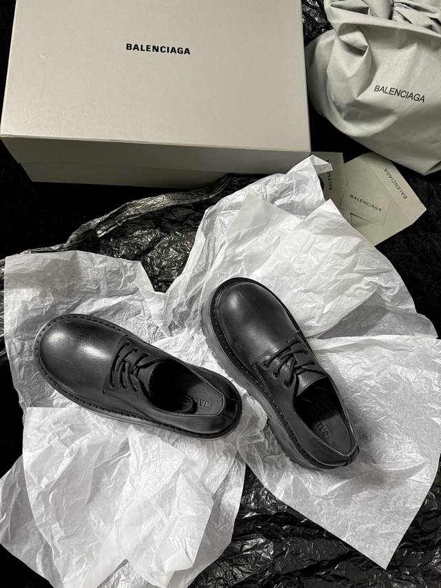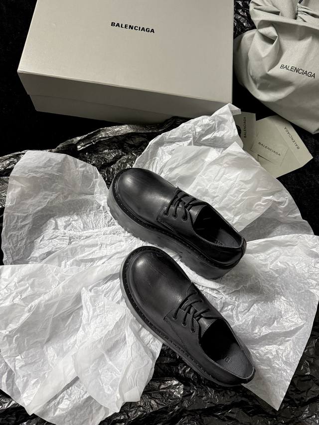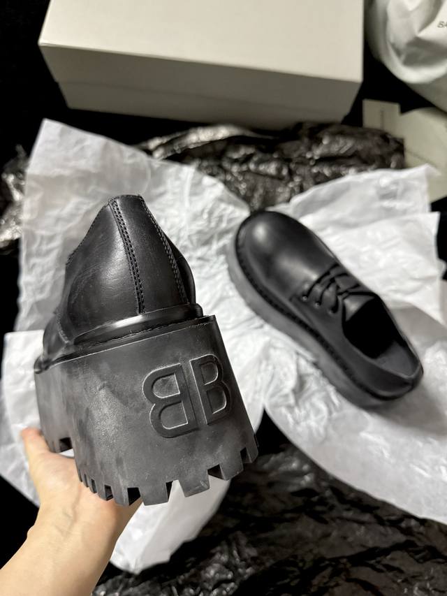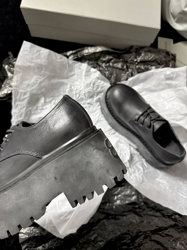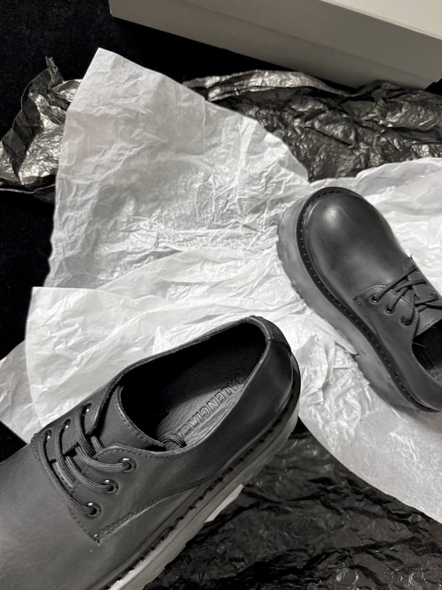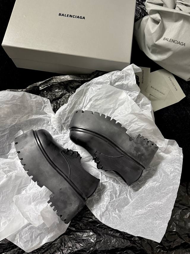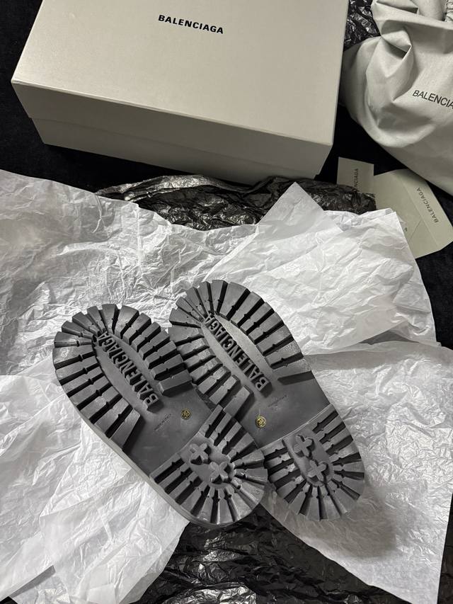/ Balenciag* 新品 简直是酷感时髦的代名词 质感十足的黑色皮革 彰显不羁态度 极具个性的厚底设计 不仅增高 还让每一步都踏出强大气场 鞋面进口树膏牛皮