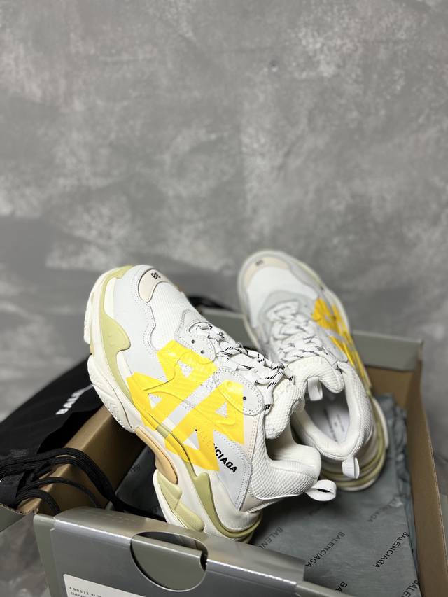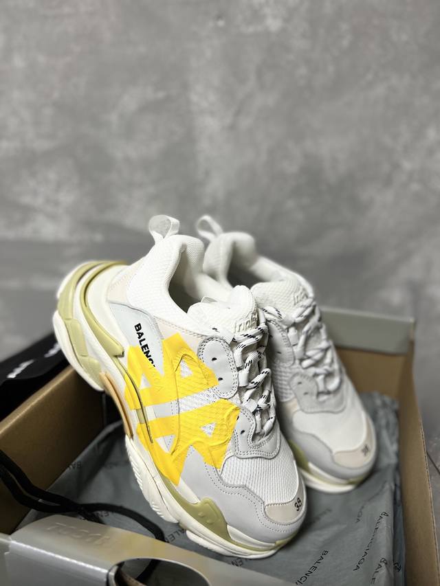 Balenciaga巴黎世家、情侣款: P Triple S Tape Type简直绝了 这款鞋设计来源于经典之最款侧面黄色双B的胶带元素Logo、潮感直接拉满