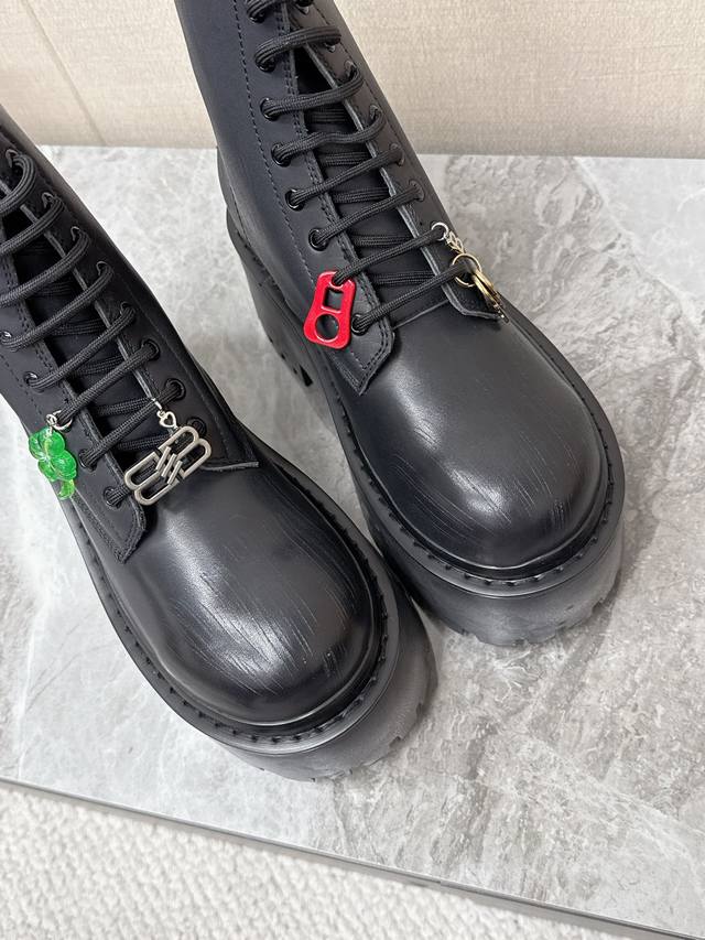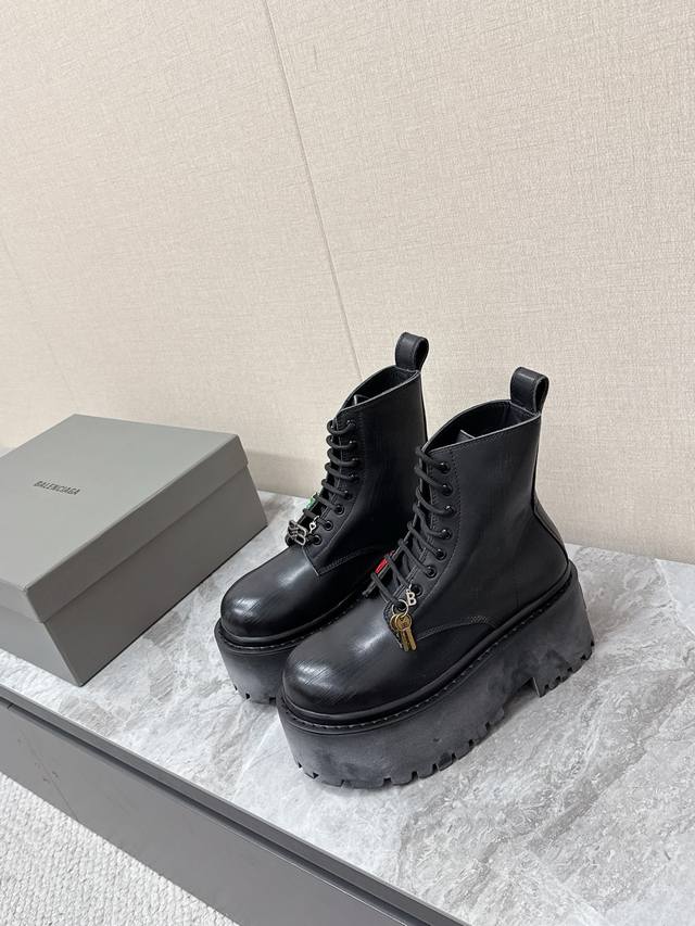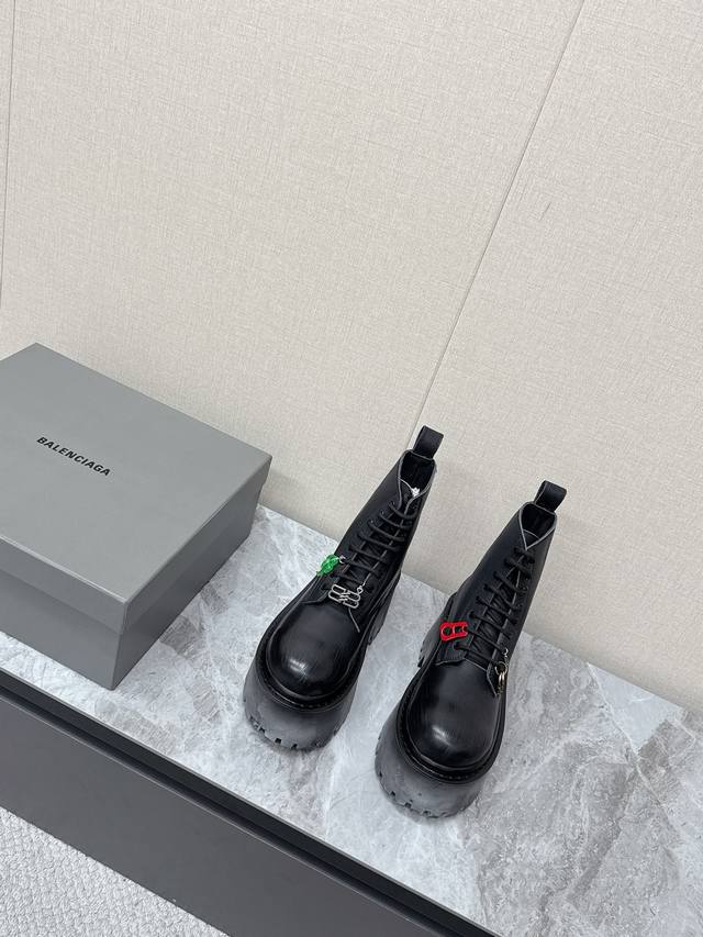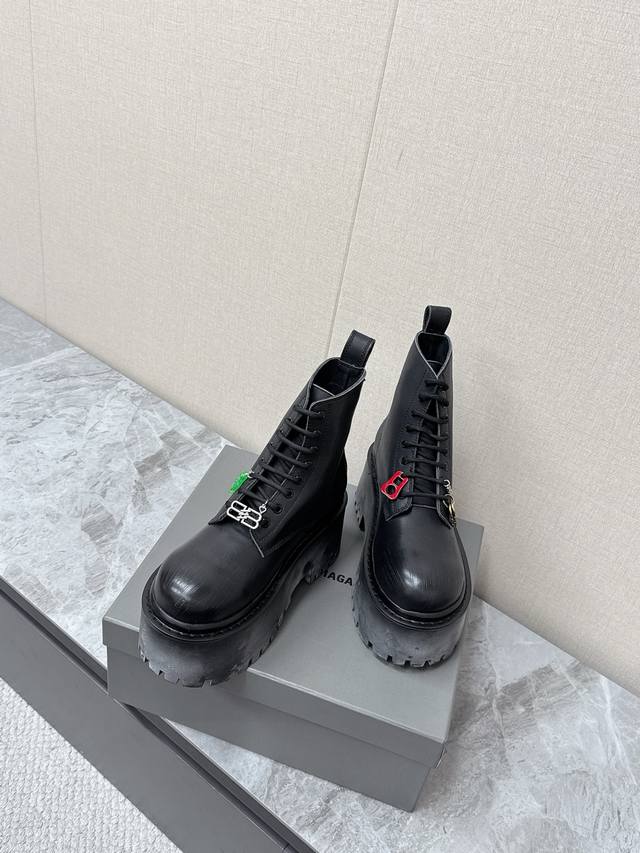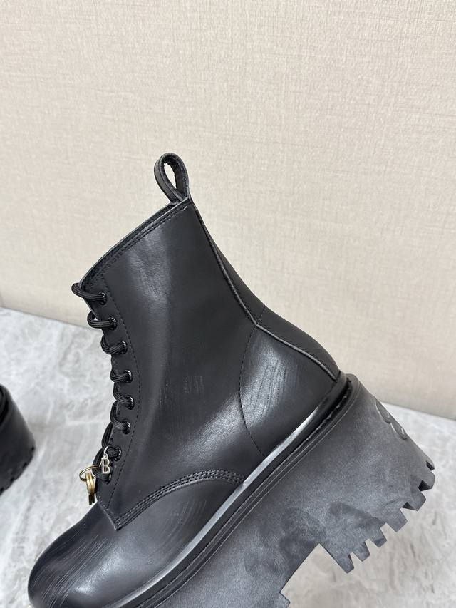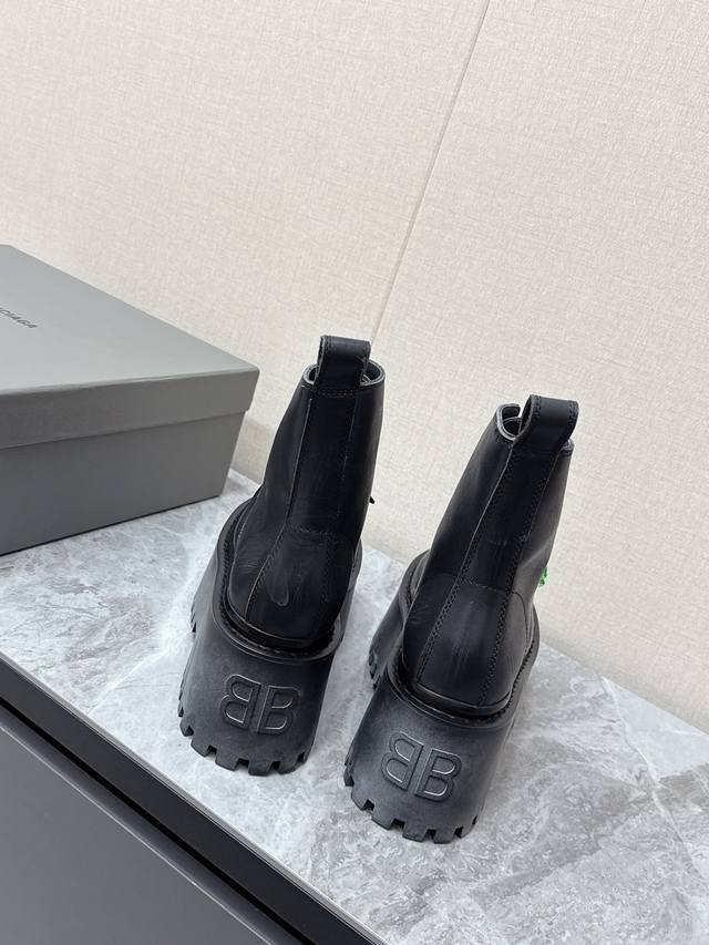 FFF Balenciaga巴黎世家最新款Strike女士厚底皮鞋 短靴 超多明星时尚博主种草 复古工艺雾化做旧效果 鞋跟后饰以Bb标识压纹 鞋面做旧抛光处理 质感上乘 光泽内敛却又奢华尽显 脚感更是舒适与格调并存 无论是搭配修身牛仔裤展现街头酷感 还是与个性裙装碰撞出别样火花 它都能轻松Hold住 穿上它,你就是街头最吸睛的存在 将时尚态度完美诠释 大底高度8Cm妥妥的增高神器 原版定制树膏牛皮 内里丝绸牛里 Size:35-40 DDD