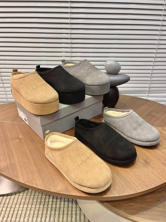Balenciaga巴黎世家秋冬最新款厚底毛毛拖 时装博主与欧美明星大爱款 冬季必备款 时尚却不过分张扬鞋面磨砂皮 内里真毛特别的蓬松柔软、亲肤脚感特别舒服 精