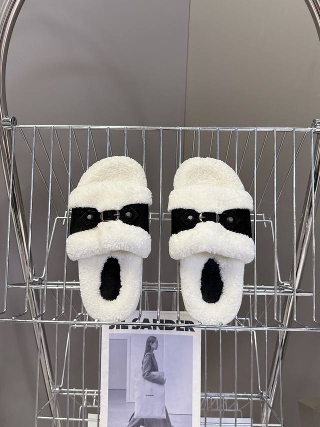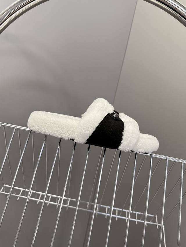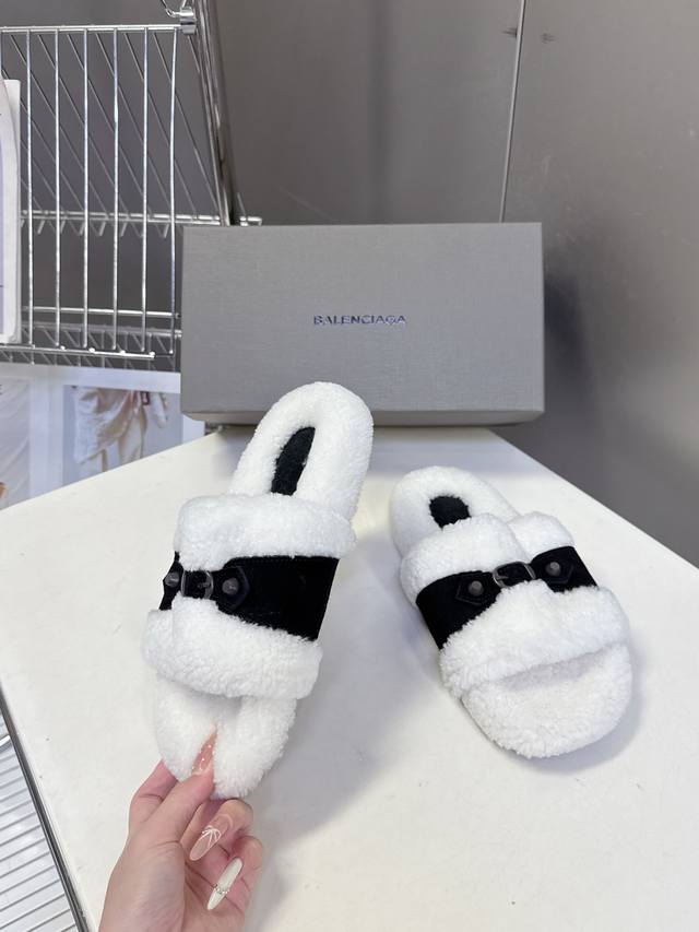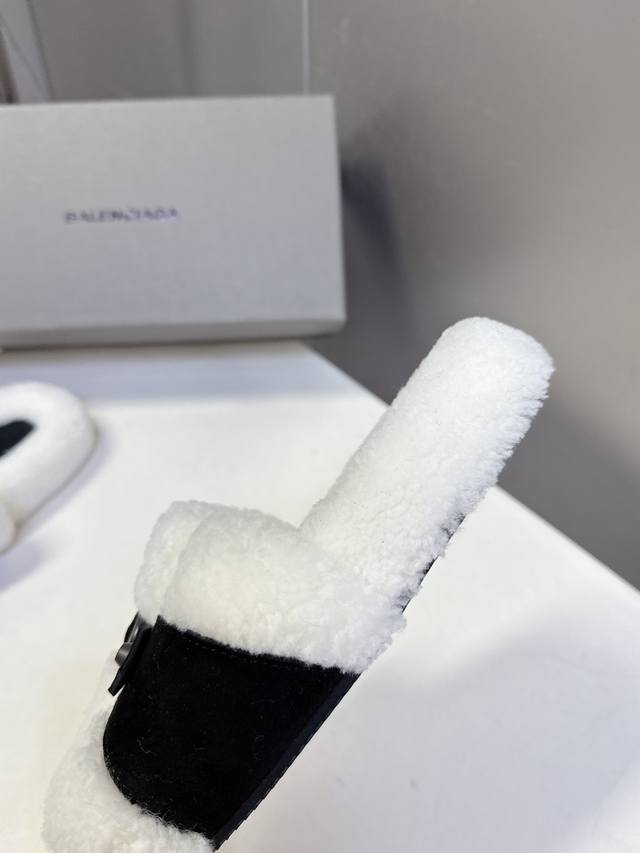 Balenciaga巴黎世家秋冬最新款毛毛拖 时装博主与欧美明星大爱款 冬季必备款 时尚却不过分张扬鞋面进口高丝光牛皮 内里真羊毛 特别的蓬松柔软、亲肤脚感特别舒服 精致的手工缝纫走线 垫脚Logo点缀高级感满满 原版橡胶防滑耐磨底 Size:35-40