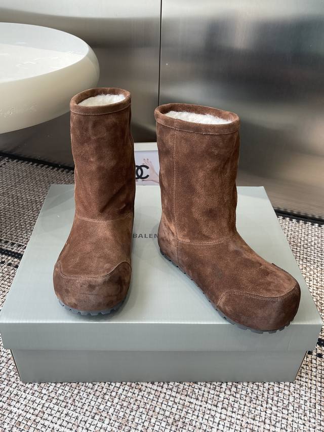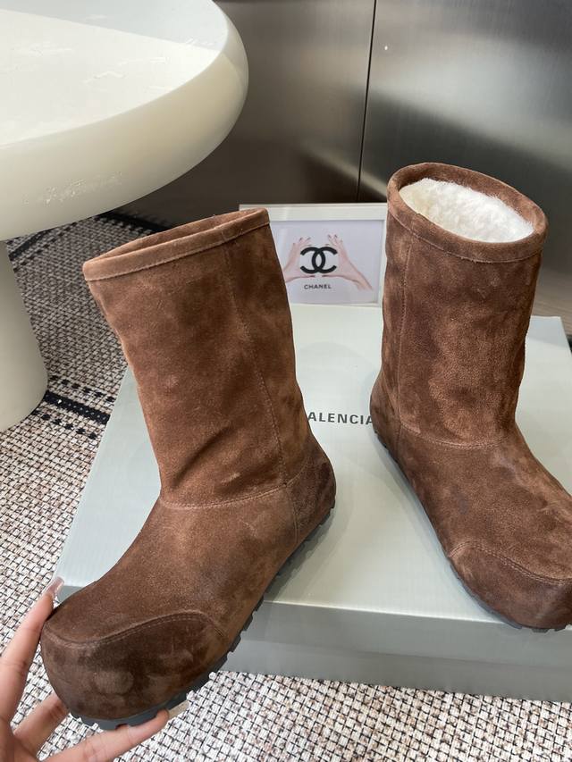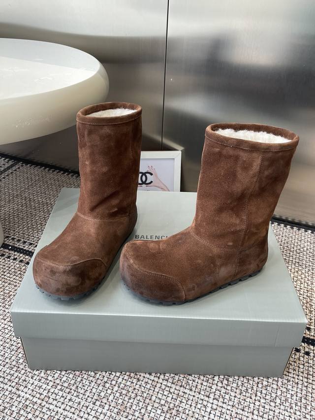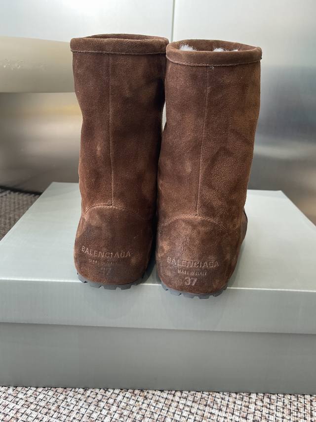 Balenciaga巴黎世家秋冬最新款 雪地靴 DDD 完全不会显得单调 零下几度穿也超级保暖 随便穿穿就很有慵懒时髦感 设计感十足的萌趣大头俏皮又不失甜酷感 鞋型圆润饱满翘度自然流畅極具辨识度 DDD 内里和鞋垫用的都是羊皮毛一体材质 又暖和又舒服 羊皮羊毛能快速吸走汗气 让双脚始终保持干爽一整天都舒舒服服的 脚感轻便不笨重走路舒适不累脚 DDD 鞋面进口高丝光牛反绒 Ddd 内里羊皮毛一体材质 Ddd 原版橡胶大底 Ddd 内增高:3Cm Ddd 码数:35-40 40定做不退换 DDD