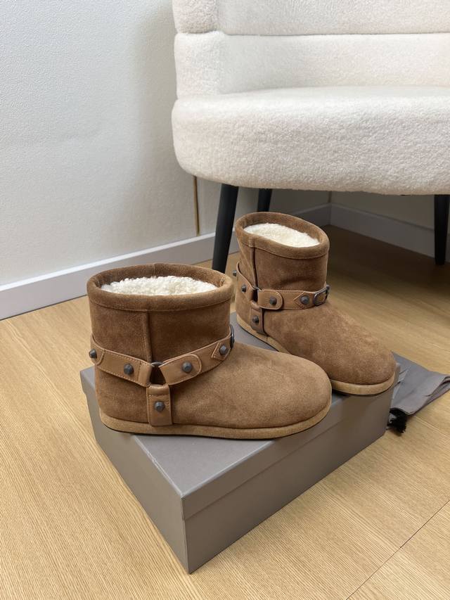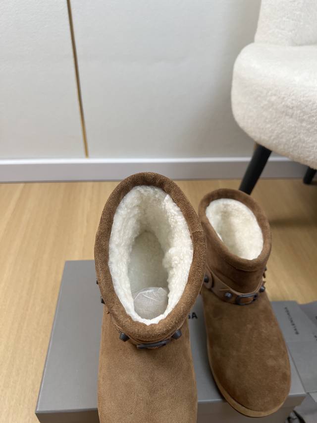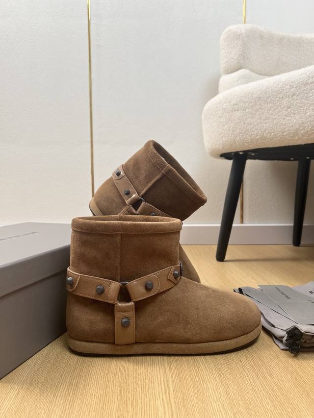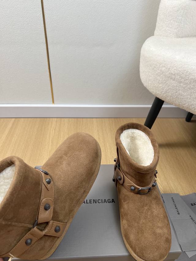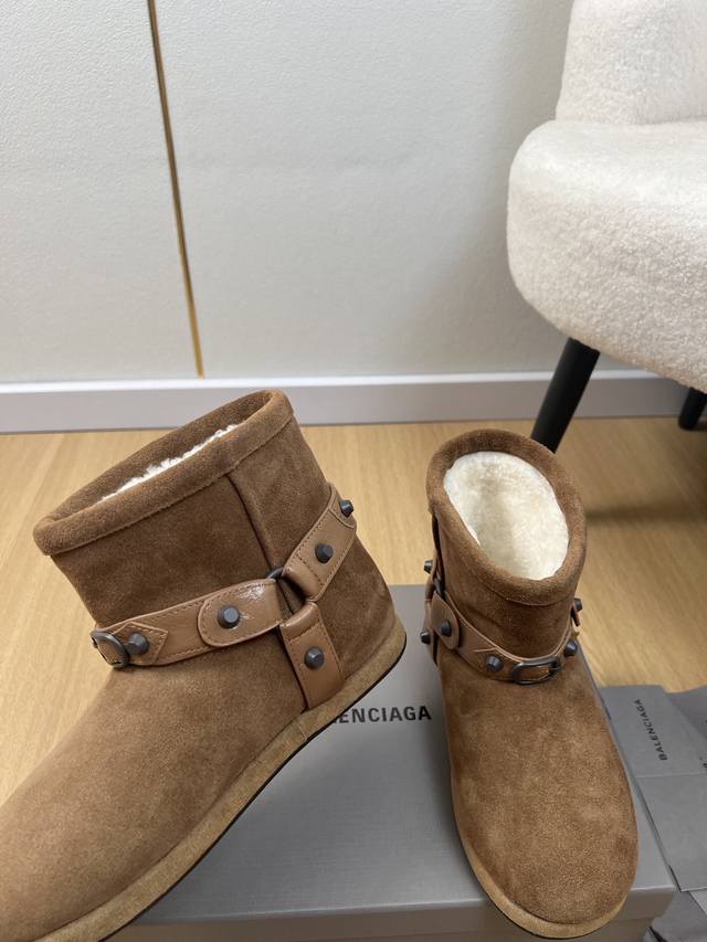 Balenciaga巴黎世家 2025 B家2025秋冬新品 专柜最新爆柳钉扣带雪地靴鞋系列 小红书力推爆款超火爆 众明星网红潮人大秀款 松驰感满满 秀气高级又