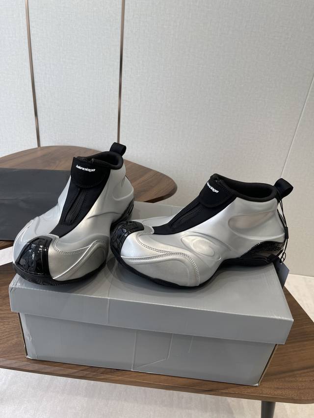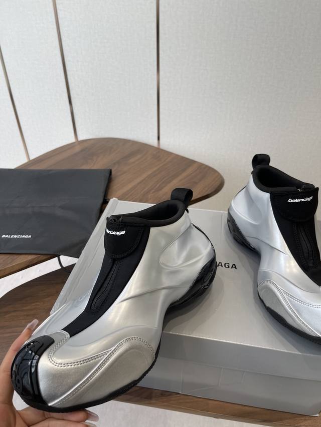 Balenciaga巴黎世家 Basketball系列 厚底 休闲 运动鞋 篮球鞋 DDD Basketball运动鞋,采用再生材料打造,以夸张大胆的运动美学塑造视觉张力,呈现五款前卫配色。鞋侧压印Loop Sports Icon品牌标志,配以拉链与魔术贴闭合设计,鞋头及后跟点缀手写尺码标识 DDD 面料: 原版定制进口科技面料 内里:定制进口透气网里 鞋底:原版开模防滑橡胶材质 DDD 底厚:6Cm DDD Size : 男款38-45 DDD