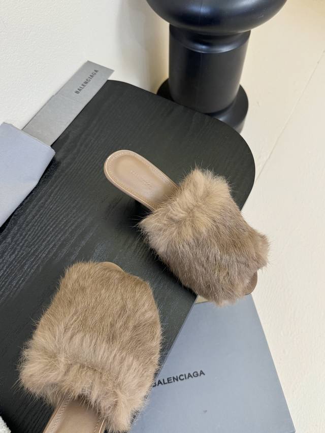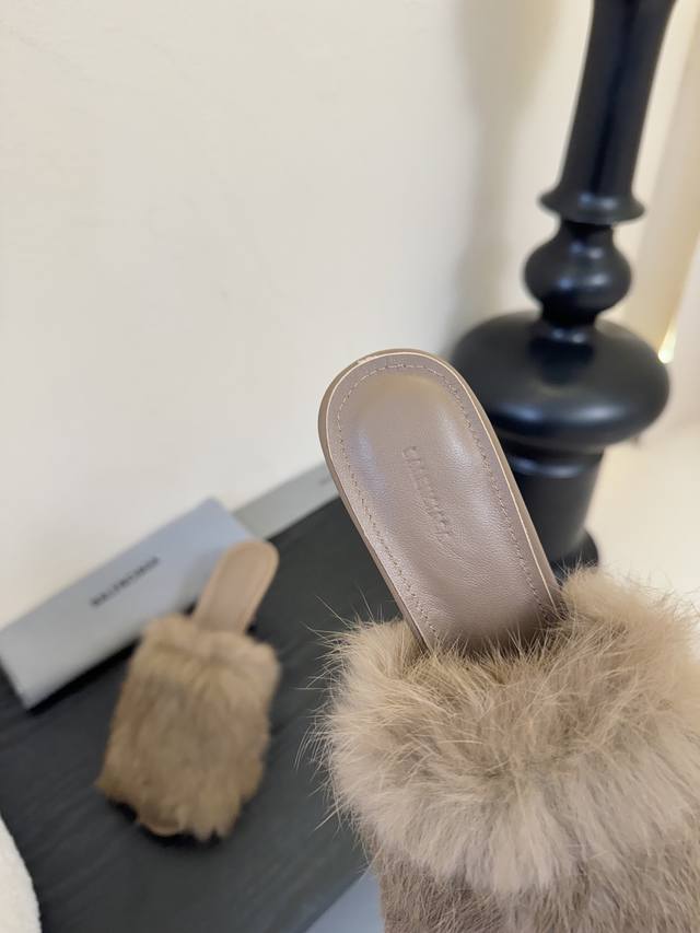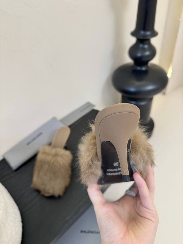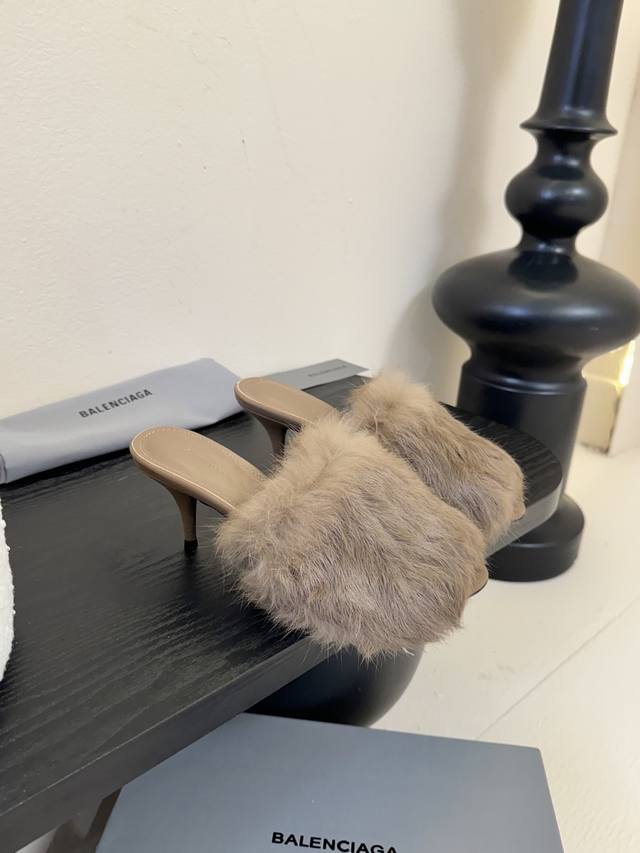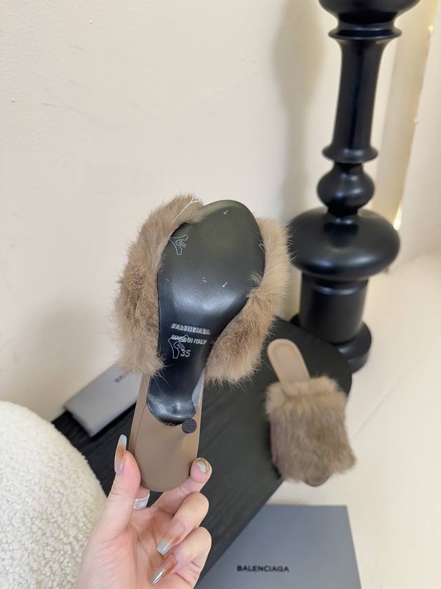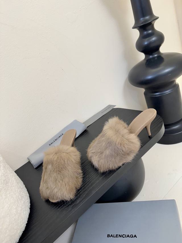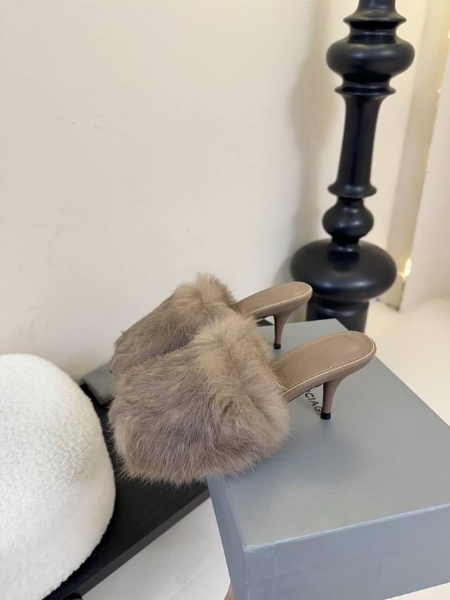 Balenciaga|巴黎世家2025 新品细跟毛毛拖鞋