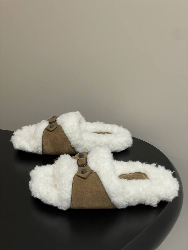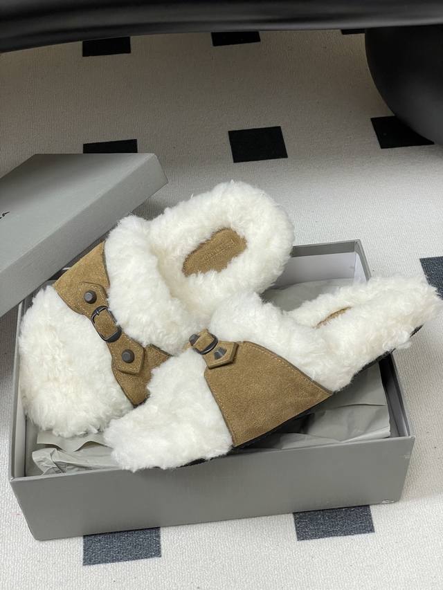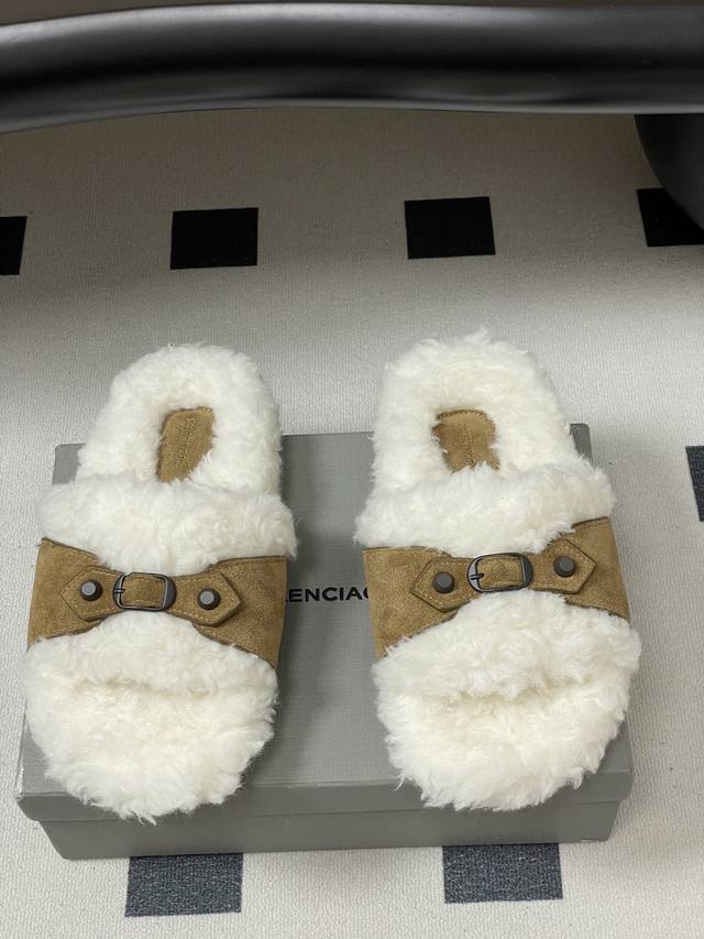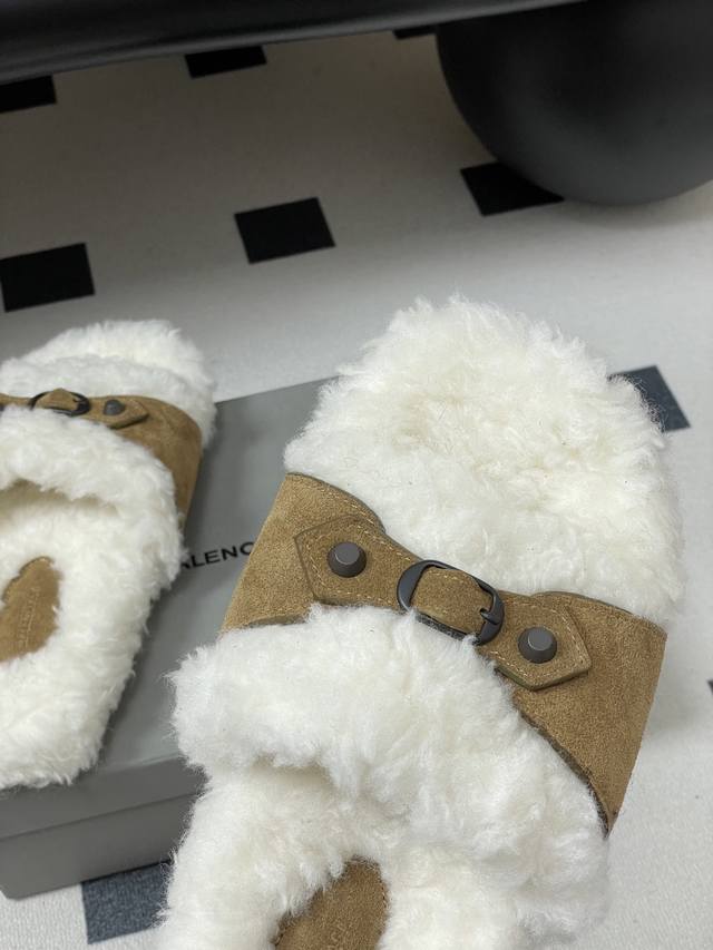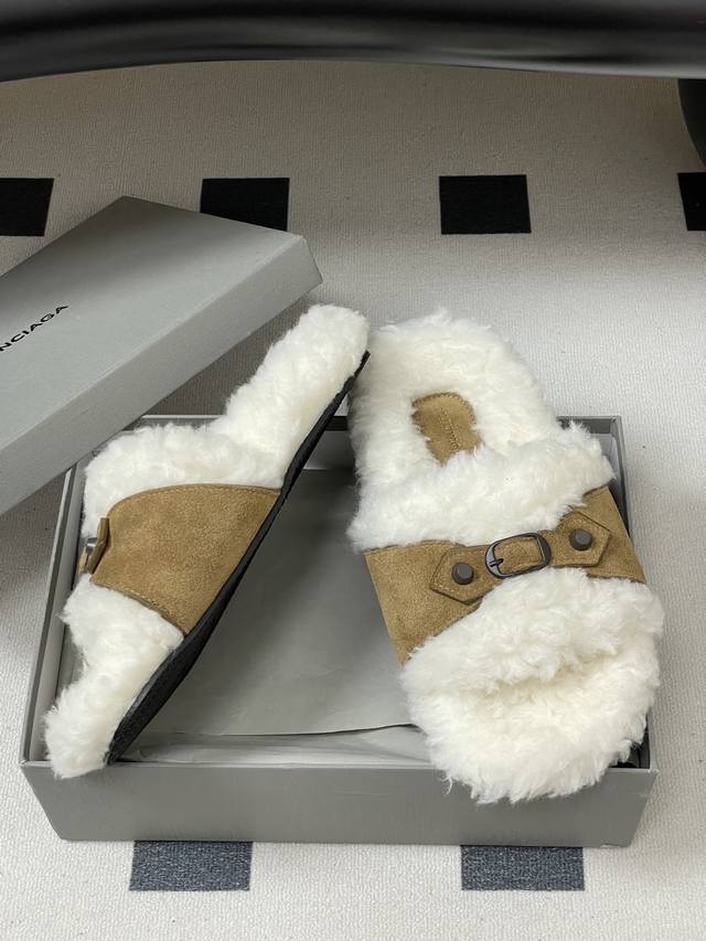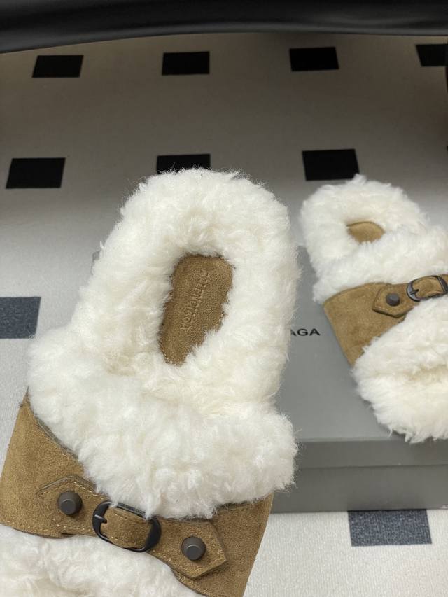 Balenciaga巴黎世家25Fw秋冬新款 羊毛拖鞋经典的搭扣铆钉毛拖鞋 DDD 这款在设计上独具匠心 以绑带与元素作为亮点 不仅能将稳固贴合于足部 更可随心调节松紧 在细节处理上 品牌标志性的做旧五金件贯穿始终 巧妙营造出复古磨损效果,彰显个性态度搭配厚实的齿状橡胶鞋底 既保证了穿着的舒适度,又强化了整体的时尚感与辦识度无疑是本季不容错过的时尚单品,它将为时尚爱好者们的穿搭增添别样魅力,引领新一轮的潮流风尚。 DDD 鞋面:磨砂皮 DDD 内里垫脚:羊毛 DDD 鞋底:开模橡胶大底 DDD 码数:35