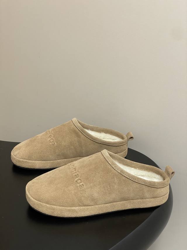 Balenciaga巴黎世家25Fw秋冬新款Alaska Soft薄底羊毛穆勒半拖鞋懒人一脚蹬勃肯毛毛鞋 DDD 鞋面采用麂皮质感面料,触感柔软细腻;鞋内填充加绒内衬,保暖性强,适合秋冬季节穿着。鞋身印有品牌压纹Logo,简约低调又具辨识度;鞋型为包头穆勒拖款式,兼顾休闲感与造型感,后跟的小拉环设计也增添了实用性与细节亮点。 DDD 搭配宽松卫衣 毛衣+束脚卫裤 直筒牛仔裤,打造慵懒随性的日常造型;脚踩这双拖鞋,既舒适又能提升整体质感,适合居家、逛街或咖啡馆打卡等场景。 DDD 鞋面:牛磨砂皮 DDD 内