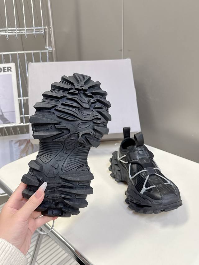 Balenciaga 巴黎世家登山鞋老爹鞋 巴黎Hike的特点包括可调节的鞋面绳索细节、宽大的外底纹理以及延长的尖头设计 DDD 绳索不仅为鞋面增添了层次感,还能帮助固定鞋子,使穿着更加稳固 DDD 鞋面采用了仿旧效果处理,呈现出重度使用的外观,这也是Demna主导的Balenciaga 中反复出现的主题运动风格的B字Logo位于前部防护区域很能打,可以搭配各种宽松的拖地裤 DDD 欧美名媛 明星 网红Girl 大爱款 精致鞋面手工缝纫走线 蓬松柔软 亲肤柔软冬季必备款 时尚却不过分张扬情侣款 休闲这双鞋