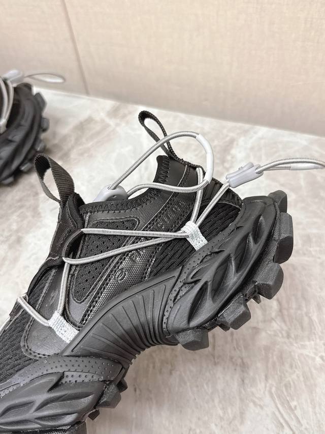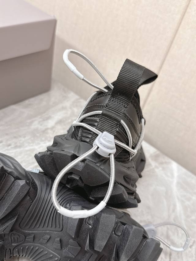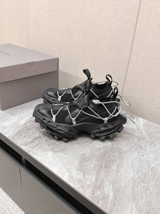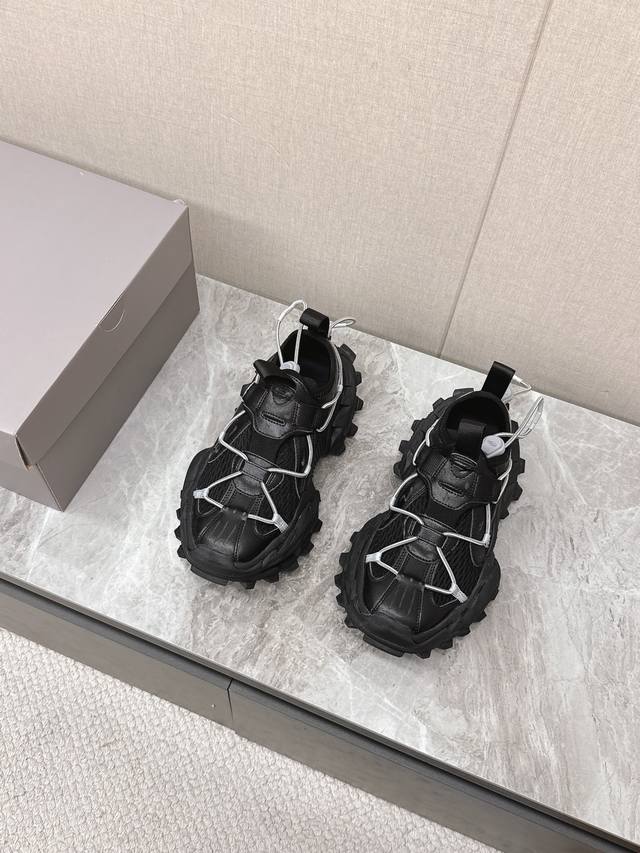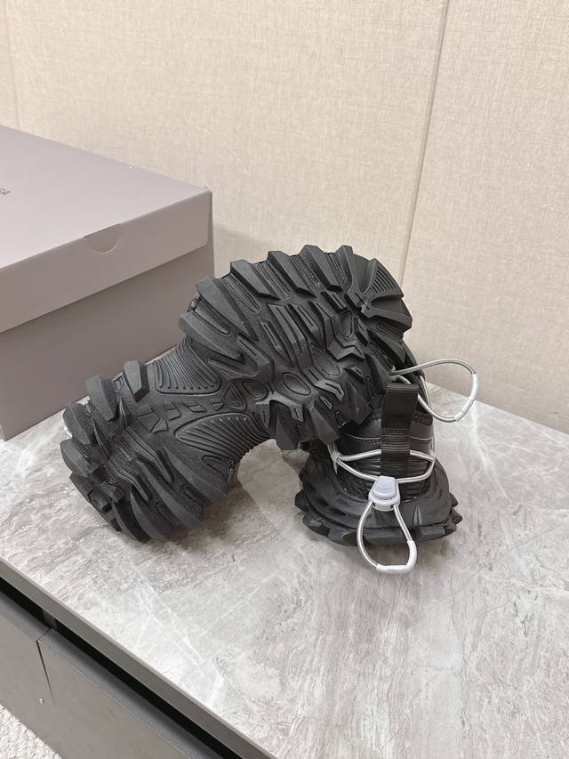 Balenciaga 巴黎世家登山鞋老爹鞋 巴黎Hike的特点包括可调节的鞋面绳索细节、宽大的外底纹理以及延长的尖头设计 DDD 绳索不仅为鞋面增添了层次感,还