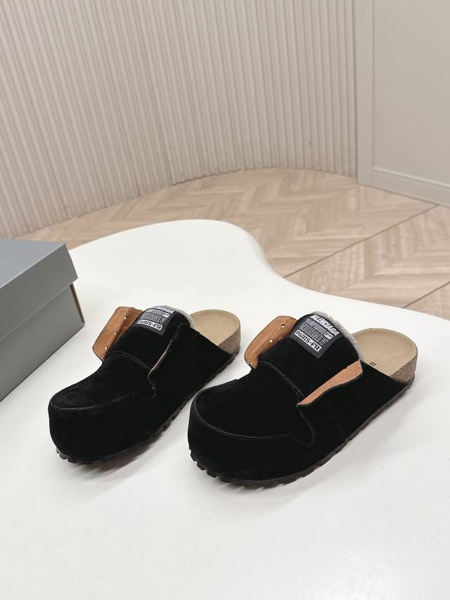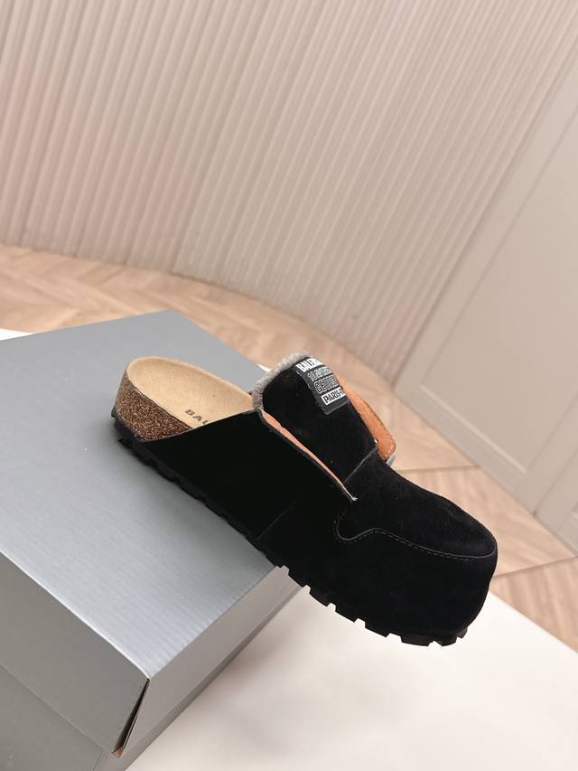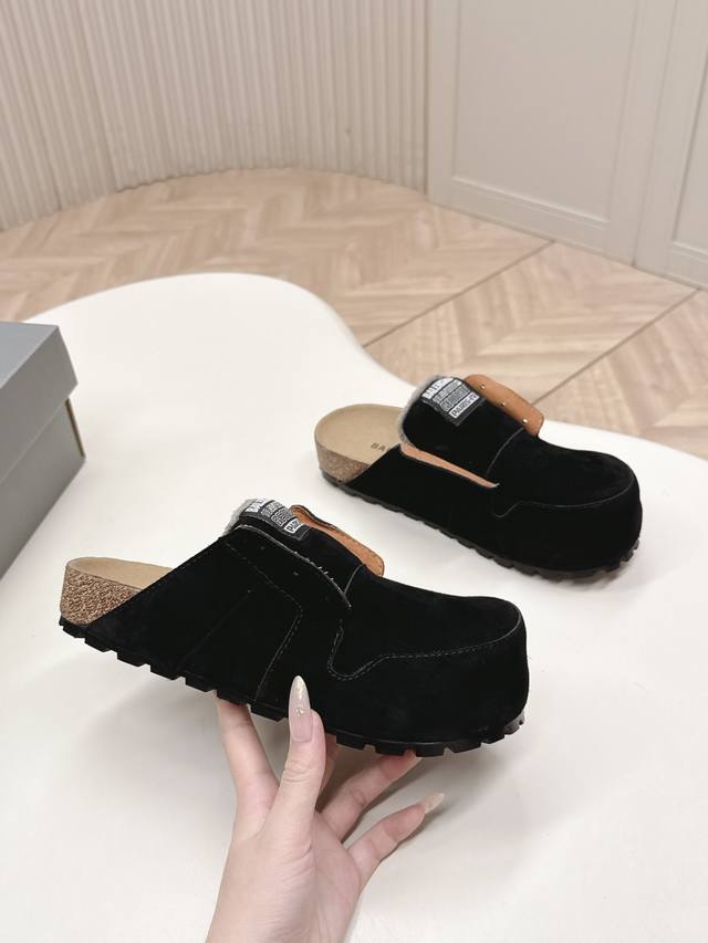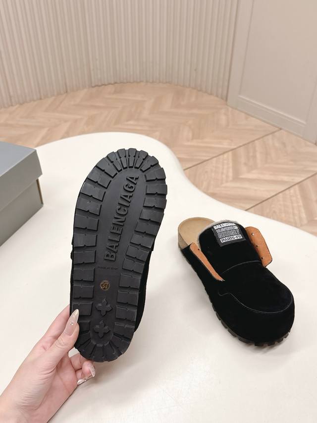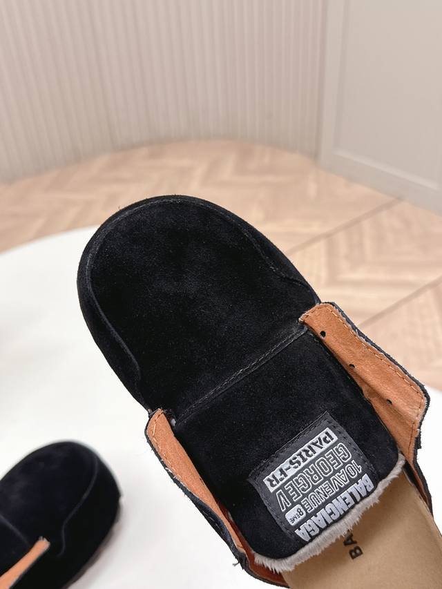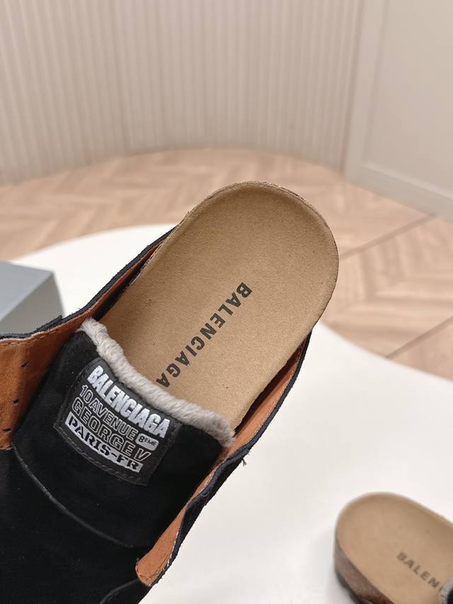 工厂p价p Balenciaga 2025秋冬新款女鞋 巴黎世家字母Logo穆勒鞋 明星同款厚底圆头居家毛毛拖鞋 市场顶级版本...